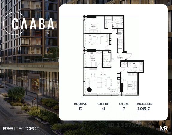 Квартиры премиум-класса в жилом комплексе Слава у м. "Белорусская" от застройщика. В продаже 3-комнатная квартира площадью 102.70 м² на 29-м этаже корпуса E. Новый современный жилой комплекс премиум-класса Слава расположен в той части центра, где традиция соединяется с прогрессивными городскими тенденциями. Здесь историческая Москва встречается с передовым миром. Популярные театры и старинные церкви соседствуют с современным деловым кварталом и гастрономическим кластером Депо. Слава находится всего в 5 мин. пешком от м. "Белорусская", по-новому открывая Ленинградский проспект. Проект был разработан легендарным архитектором Хельмутом Яном, основателем чикагского архитектурного бюро Jahn. Его работы отмечены множеством наград и реализованы в мегаполисах по всему миру. По замыслу архитекторов, жилой комплекс образуют четыре высотные башни, соединенные одноэтажным стилобатом "Хронограф". Здесь, на первом уровне, открытые и закрытые общественные пространства: небольшие сады, места для встреч и отдыха, кафе, рестораны, магазины, спортивный центр и даже выставочное пространство. Важнейшей особенностью пространства является его всесезонность: благодаря правильной организации, ландшафтному дизайну, инженерной инфраструктуре здесь будет уютно и в жару, и в xолод, и в ненастье. На втором уровне стилобата расположится приватный парк для жильцов. Особенности комплекса: - Идеальное расположение в престижной части Москвы (10 мин. от Кремля) - Панорамное остекление - Подземный паркинг с дизайнерской отделкой - Современные инженерные системы - Продуманная внутренняя инфраструктура - Приватный сад 7700 кв.м. Расположение комплекса: - 5 минут до станции метро "Белорусская" - 3 минуты до ТТК - 8 минут до "Садового кольца" Компания MR предлагает своим клиентам специальные условия приобретения квартир в рамках программ ипотечного кредитования от банков-партнеров. Квартира в новостройке в районе Беговой в Москве.
