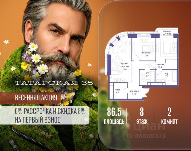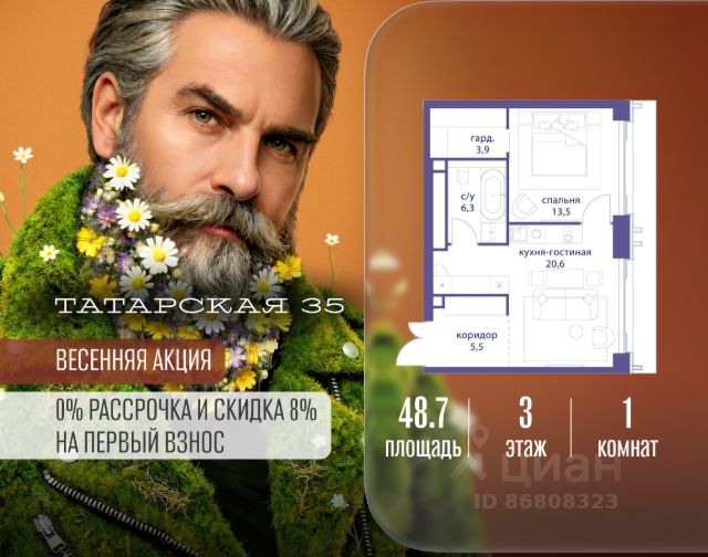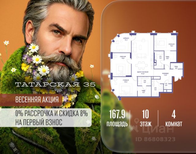Продается просторная квартира площадью 318.60 м2 в жилом комплексе ТАТАРСКАЯ, 35. Квартира находится в 2 секции корпуса 2. Этаж 19-й из 19. Квартира без чистовой отделки, с просторной кухней 124.70 м2. Жилая площадь 93.20 м2. Высота потолка от 3.50. ТАТАРСКАЯ, 35 - новая архитектурная доминанта Замоскворечья, достопримечательность на фотопанорамах исторического центра Москвы. Элитный дом, созданный для тех, кто умеет смотреть далеко вперед, мыслить масштабно и воплощать собственный сценарий жизни. Вдохновляющие прогулки по променаду набережной, в уютных переулках, в парке "Зарядье", в Михайловском саду и Репинском сквере. Наслаждение высоким искусством в Третьяковской галерее, Доме Музыки, театральном музее им. А.А. Бахрушина, театре на Малой Ордынке. За окнами - Кремль, высотка на Котельнической, панорамы Замоскворечья и острова Балчуг, огни Садового кольца. Собственные спорт-румы, детская, репетиторская, бьюти-пространства, деловое пространство с коворкингом, переговорной и сигарной. Собственный трехуровневый фитнесс-центр с бассейном, тренажерным залом, сауной, хаммамом, массажным кабинетом. Площадь двора - 1,8 га, половина территории покрыта деревьями, кустарниками и лужайками. Дом расположен внутри Садового кольца - отсюда в считанные минуты можно добраться до важнейших мест столицы: достопримечательностей и парков, театров и ресторанов, деловых и административных центров. 7 минут до Кремля на автомобиле, 15 минут до Третьяковской галереи и 8 минут до Садового кольца пешком. Планировочные решения и визуализации предварительны, возможны изменения. Продается квартира в новостройке на улице Большая Татарская в Москве.