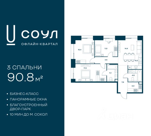 Цены указаны с условием 100% оплаты и стандартной ипотеки. Прямая продажа от застройщика! Продается 3-к. квартира номер 433 общей площадью 90.8 кв.м. на 8-м этаже 18 этажного дома, Корпус 8. Без отделки. Проект бизнес-класса СОУЛ от девелопера FORMA. До метро Сокол 10 мин пешком. Архитектура от британского бюро SimpsonHaugh. Благоустройство дворов — Gillespies и GAFA. Территория состоит из культурного парка и приватных дворов. Озеленение в эстетике лесного оазиса. Насыщенное благоустройство: прогулочные тропинки, релакс-зоны, пряный и сенсорный сады, развивающие детские площадки и воркауты. В центре проекта объект культурного наследия — общественное пространство Изофабрика, построенная в 30-х годах по проекту архитектора Георгия Гольца. Здесь будут располагаться мастерские для взрослых и детей, выставочные залы, коворкинги, образовательный центр, рестораны и кафе. Квартиры с панорамными окнами, мастер-спальнями, гардеробными, классическими балконами и лоджиями, видовыми террасами. Высота потолков от 2,9 до 3,5 м. В проекте 2 детских сада на 100 и 200 малышей. Клубная гостиная, фитнес-рум, детская игровая комната, дизайнерские лобби, подземный паркинг и келлеры. Квартира в новостройке на улице Часовая в Москве.