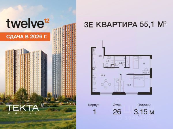 Рассрочка 0% с платежом от 120 000 ₽ в месяц. Сдача уже в 2026 году 3-комн. квартира в ЖК "Твелв" на 5 этаже в 22 этажном здании Корпус 2. Общая площадь: 56.8 кв.м., жилая: 37.60 кв.м. Высота потолков 3.00 м. ЖК Твелв от застройщика Текта Групп — это новый уровень жизни в районе Нагорный в 3-х минутах от станции метро. Проект представляет собой воплощение современной концепции комфортной жизни, где функциональность органично сочетается с эстетикой. Архитектура Твелв создает атмосферу, вдохновляющую на успех и располагающую к позитивным эмоциям. Дом, в котором каждый день будет наполнен уютом, а не рутинной работой и дорожными пробками. Твелв предлагает своим жильцам продуманные планировки, возможность объединения квартир, а также увидеть красоту города через угловое остекление увеличенных окон. Особое внимание уделено комфорту жителей: благоустроенная территория, зеленые насаждения, детские площадки, парковка. ЖК Твелв — это больше, чем просто жилье: это атмосфера умиротворенности, комфорта и гармонии. Продается квартира в новостройке на проезде Электролитный в Москве.