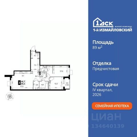 Прямая продажа от застройщика! Жилой Комплекс Комфорт класса. Продаётся 4-к квартира номер 420 общей площадью 85.3 кв.м. на 2-м этаже 32 этажного здания. Без отделки. Цена с учётом скидки. Особенности квартиры: - Организуем показ в удобное для вас время! - Мастер-зона с санузлом и гардеробной. Всё для вашего комфорта и удобства, включая личный санузел и гардероб. - Просторная спальня, в которой можно разместить большую кровать. - Угловая планировка - больше пространства для ваших идей. - Увеличенное количество окон - дополнительное освещение и свежий воздух. - Гостевой санузел - комфорт и удобство для ваших гостей. - Душ помимо ванной - дополнительное удобство для вашей семьи. - Постирочная - организуйте пространство для стирки и сушки вещей. - Евроформат - просторное и удобное жилье с отличной планировкой. - Место для игры/занятия спортом - идеальное пространство для активных детей. - Можно оборудовать 2 или более рабочих места - пространство для нескольких человек. - Возможность добавить спальное место - дополнительный комфорт для гостей. - Проходная кухня-гостиная - идеальное пространство для общения и готовки. - Гардеробная - удобство для хранения и организации вещей. - Ниша под шкаф - компактное и удобное место для вещей. - Лоджия - уютное место для отдыха и тишины. Квартира без отделки. Чистый холст для воплощения интерьера вашей мечты. Информация о комплексе: ЖК "1-й Измайловский" в восточной части Москвы: идеальное место для жизни в окружении 14 000 гектаров леса. Наслаждайтесь лыжными прогулками зимой и пробежками летом в сиреневом саду и лесопарках. Комплекс отгорожен от шоссе застройкой первой линии и садами здоровья. Из окон открываются виды на парк "Лосиный остров" и зеленые дворы. Близость к природе и спортивным объектам создаёт атмосферу здорового образа жизни. Транспортная доступность: Не более 2,5 км до станций метро "Щёлковская" и "Черкизовская" и МЦК "Локомотив". Щёлковское шоссе соединяет квартал с Северо-восточной хордой и МКАД, Центральным автовокзалом и Восточным железнодорожным вокзалом. Две автобусные остановки в паре минут ходьбы и 11 маршрутов общественного транспорта. На автомобиле 3 минуты до СВХ 12 минут до ТТК 15 минут до Садового кольца Внутренняя инфраструктура: ЖК расположен в историческом районе Москвы с развитой инфраструктурой. В шаговой доступности: 6 детских садов (включая собственный на 125 мест), 3 школы, поликлиники, торговые центры и парки. Проект создан для здорового образа жизни: рядом стадионы, спортивные объекты для футбола, баскетбола и конного спорта, а также более 30 км беговых и велодорожек. Всё для активной жизни в окружении зелени и современной инфраструктуры. Цена с учётом скидки. Квартира без отделки - чистый холст для вашего интерьера. Продам квартиру в новостройке в районе Гольяново в Москве.