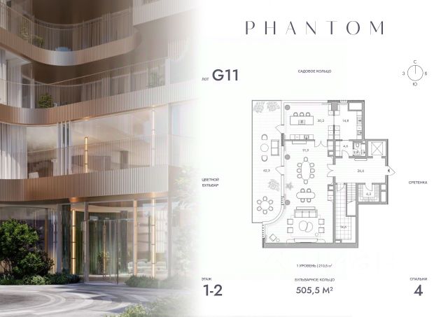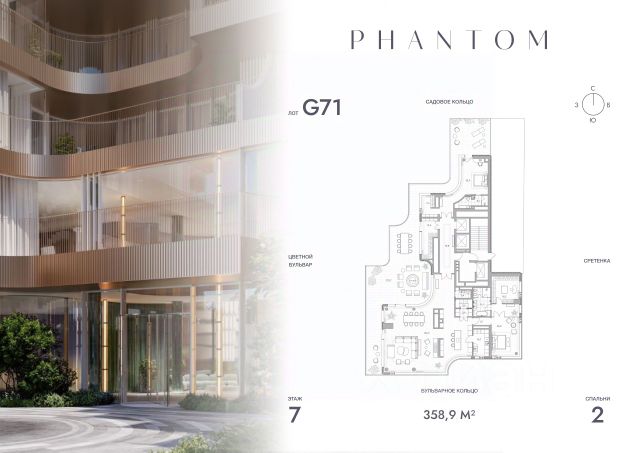 Представляем пентхаус на 9 этаже Резиденций PHANTOM. Общая площадь лота составляет 426,4 кв.м. и включает три мастер-спальни с собственной ванной и гардеробом, большую кухню-гостиную, кабинет, приватное патио, прачечную и гостевой санузел. В квартире выполнена финишная отделка с использованием натурального дерева и камня, ванные комнаты и кухни полностью оборудованы современной техникой и мебелью. Среди ее достоинств - окна на три стороны и дровяной камин в гостиной. Досконально выверенное планировочное решение создает функциональное и визуально легкое пространство. Высокие потолки и большие окна наполняют квартиру воздухом и светом. PHANTOM пространство абсолютного физического и эмоционального комфорта. Клубный дом класса deluxe, за футуристичными и плавными фасадами которого скрыт приватный мир, создающий идеальную среду для жизни. Преобладание белого цвета в экстерьере, сплошное остекление, неравномерный ритм террас и обтекаемость контура фасада создают эффект невесомости. Дом словно парит в воздухе. Мягкие природные линии фасада плавно переходят во внутреннее пространство здания. Здесь все сценарии жизни объединяются в высококлассной клубной инфраструктуре: собственный корт для падел-тенниса, терраса на крыше с открытым камином и дизайнерским водопадом, кинозал, сигарная, двухуровневый ивент-холл, библиотека, переговорная, панорамный фитнес зал, игровая и комната красоты. Внутренняя территория полностью закрыта от посторонних. Это природный оазис с водной архитектурой, зонами отдыха, уютными беседками и детской площадкой. Здесь легко отстраниться от городского шума и почувствовать комфорт. Подземный паркинг имеет удобный въезд для спорткаров и автомобилей представительского класса, зарядные станции для электромобилей, автомойку, комнату хранения велосипедов, келлеры и валет сервис. Вы всегда сможете оставить свой автомобиль у входа в лобби и получить его чистым в нужное время. Все машиноместа имеют увеличенную площадь. Продается квартира в новостройке в районе Мещанский в Москве.