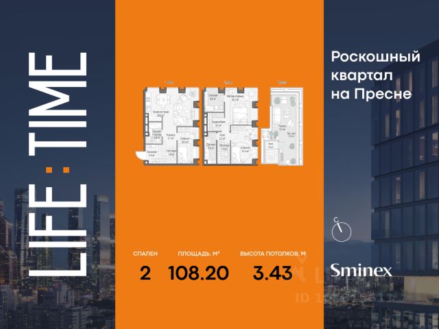 Просторная светлая квартира площадью 106,8 кв. м с окнами в тихий приватный двор-парк с ландшафтным дизайном и на северную панораму города. Большое панорамное окно в с/у с возможностью открывания настежь улучшает видовые характеристики. Продуманная планировка позволяет разместить две спальни с отдельными санузлами и гардеробными. Life Time - роскошный современный квартал на Пресне, в наиболее быстро растущем премиальном районе ЦАО. Его насыщенная инфраструктура и выгодное расположение дарят время для жизни. Вы больше не тратите его на дорогу или ожидание, при этом ни в чём себе не отказывая. На территории предусмотрено всё для комфортной жизни: • двор-парк площадью 1,8 гектара с прудом и фонтанами; • Clubhouse - инфраструктурный центр в отдельном здании с исчерпывающими возможностями для спорта, отдыха и досуга только для жителей; • спортивная инфраструктура на улице и в помещении, в том числе бассейн длиной 25 метров, хот-таб, хаммам, сауна, бьюти-зона; • клубная гостиная с террасой; • всё для развития и досуга детей любого возраста, в том числе детский сад и школа. Life Time находится в центре сложившегося премиального района, в окружении многочисленных парков. Удобная транспортная доступность и прямой выезд на Звенигородское шоссе позволяют без проблем добраться до Садового кольца и Москва-Сити. Архитектурный стиль квартала - роскошный минимализм. Дома десятилетиями будут выглядеть современно. Купить квартиру в новостройке рядом с метро Беговая.