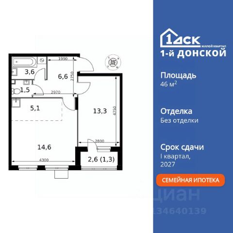 Продаётся 2-к квартира номер 751 общей площадью 46 кв.м. на 22-м этаже 24 этажного здания. Без отделки. Цена с учётом скидки. Особенности квартиры: - Просторная спальня, в которой можно разместить большую кровать. - Линейная планировка - максимальная функциональность и удобство. - Раздельный санузел - больше удобства для всех членов семьи. - Евроформат - просторное и удобное жилье с отличной планировкой. - Кухня-гостиная - идеальное пространство для встреч с близкими. - Линейная кухня - функциональность и практичность в одном решении. - Лоджия - уютное место для отдыха и тишины. Квартира без отделки. Чистый холст для воплощения интерьера вашей мечты. Прямая продажа от застройщика! Жилой Комплекс класса Комфорт Плюс. Продаётся 2-к квартира номер 751 общей площадью 46 кв.м. на 22-м этаже 24 этажного здания. - Просторная спальня, в которой можно разместить большую кровать. - Линейная планировка - максимальная функциональность и удобство. - Раздельный санузел - больше удобства для всех членов семьи. - Евроформат - просторное и удобное жилье с отличной планировкой. - Кухня-гостиная - идеальное пространство для встреч с близкими. - Линейная кухня - функциональность и практичность в одном решении. - Лоджия - уютное место для отдыха и тишины. Квартира без отделки. Чистый холст для воплощения интерьера вашей мечты. ЖК "1-й Донской" в 7 км от МКАД: гармония городского комфорта и природы. Квартиры на 2-3 стороны света, форма секций и разная этажность создают динамичную архитектуру. Тёплая палитра фасадов и подсветка подчеркивают образ. Рядом - Ермолинский парк, Видновский лесопарк и Жуковский парк. Природа воздействует на все уровни восприятия: от видов до звуков и ароматов. Идеальный баланс для жизни в гармонии с окружающей средой. Комплекс удобно расположен в 7 км от МКАД по трассе М-4 Дон (через Видное). Расстояние до Каширского шоссе составляет 12 км. Добраться до метро и центра Москвы позволяет развитая сеть маршрутов общественного наземного транспорта. Действующая ж/д станция Калинина Павелецкого направления в 15-17 минутах ходьбы (МЦД-5 в 2025-2026 гг). "1-й Донской": продуманная среда в развивающемся районе. На территории - муниципальные школа и 2 детских сада, поликлиника, торговый центр с площадью для мероприятий. Сеть пешеходных маршрутов ведёт к магазинам и кафе, отделённым от дорог зелёными фито-стенами. Сквозные подъезды с панорамным остеклением и входами с улицы и двора наполнены светом. Всё для комфортной жизни в шаговой доступности, от повседневных нужд до общественных пространств.