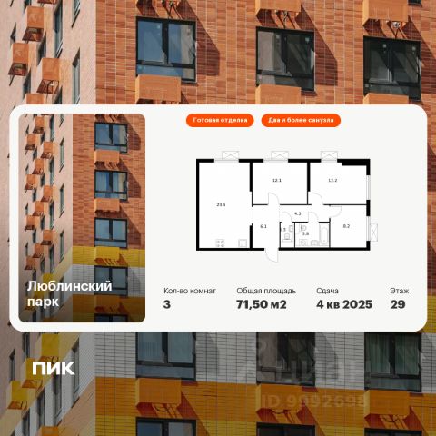 Продаётся 1-комн. квартира площадью 32,7 кв.м на 14 этаже 17 этажного дома (Корпус 14.6, Секция 4) проекта ПИК Люблинский парк. Светлый просторный подъезд на уровне земли, функциональная планировка, большие окна, c отделкой. Жилой квартал "Люблинский парк" расположен на юго-востоке Москвы, в шаговой доступности от станции "Братиславская". На метро до центра ехать всего 30 минут. Также недалеко станция МЦД "Перерва", от которой можно уехать в Москву или в область. В проекте 54 жилых корпуса, три школы, семь детских садов, поликлиника. В районе есть все условия для комфортной жизни: торговые центры, школы, детские сады, поликлиники и спортивные центры. Рядом находятся усадьба Люблино, скверы и парки. Различные магазины, кафе и другие сервисы откроются на первых этажах, а на подземных будут паркинги с удобной навигацией. В зелёных дворах без автомобилей мы построим детские площадки и места для отдыха. А ещё "Люблинский парк" стал третьим проектом ПИК с большой игровой площадкой PlayHub, которая уже открылась между 1-м и 2-м блоками на безопасном расстоянии от дороги. Новое детское пространство "Остров" воплощает идею бесконечной игры. Ландшафт площадки — это ещё и игровой элемент, который помогает детям придумывать множество самых разнообразных игр. Здесь интересно детям разного возраста — от малышей до подростков. Жителям квартала Люблинский парк и их друзьям доступен проект ПИКСПОРТ — это бесплатные занятия с профессиональными тренерами. Тренировки по разным направлениям, например йога, фитнес, бег, воркаут, проходят как в группе на улице рядом с домом, так и онлайн. Артикул 897163 (Застройщик ООО СЗ "Люблино Девелопмент") Продается квартира в новостройке рядом с метро Братиславская.