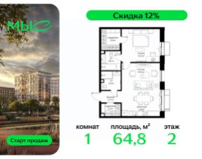 Прямая продажа от застройщика. Продаётся 1-комнатная квартира общей площадью 44.25 м² без отделки в премиальном жилом комплексе "МЫС" на 2-м этаже 12 этажного дома. Квартира расположена в корпусе "Волга". Проект МЫС — это, прежде всего, идеальное место для семей. В рамках проекта построят государственную школу, два детских сада и дворец спорта площадью 20 000 м2 с термальным комплексом, выплывным бассейном, фитнес-залом, теннисными, сквош и падел кортами и секциями для детей. На территории площадью, сравнимой с тремя парками Зарядье, появятся кафе и рестораны, пруд с набережной, спортивные и детские площадки, скейт-парк, лыжные и веломаршруты. Расположение: - 2 минуты до скоростной трассы М1 и Минского шоссе; - 10 минут до МКАД; - 15 минут до МЦД Лесной Городок - 20 минут до делового центра "Москва-Сити"; - 28 минут до аэропорта "Внуково". Благоустройство: - велосипедные и лыжные маршруты; - собственная набережная и парк; - лаунж-зоны в окружении природы; - беседки у очага; - дворец спорта площадью 20 000 м²; - термальный комплекс с тремя бассейнами; - 4 теннисных и падел-корта; - 6 сквош-кортов; - многофункциональный спортзал; - скейт-парк; - просторная площадь для прогулок с фонтаном; - детский Клуб с творческими секциями; - гастро-доминанта; - кафе у пруда, рестораны, ритейл. Окружение - соседство с лесным фондом; - школа на 1250 мест и 2 детских сада на 350 и 255 мест; - Дубковский и Подушкинский леса, парк "Рассказовка", Мещерский парк. Действуют специальные условия при 100% оплате, подробности уточняйте у менеджера в офисе продаж.