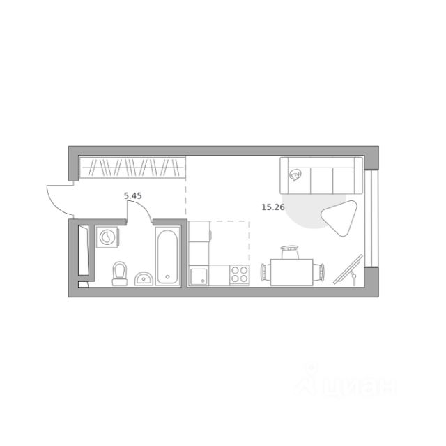 Продаётся студия 285, площадью 28,78 м², на 24 этаже в ЖК "Тринити" корпус 1. Стоимость — от 15762127 руб. Квартира с отделкой, планировка односторонняя, окна на улицу.