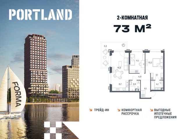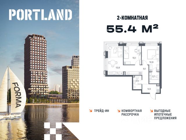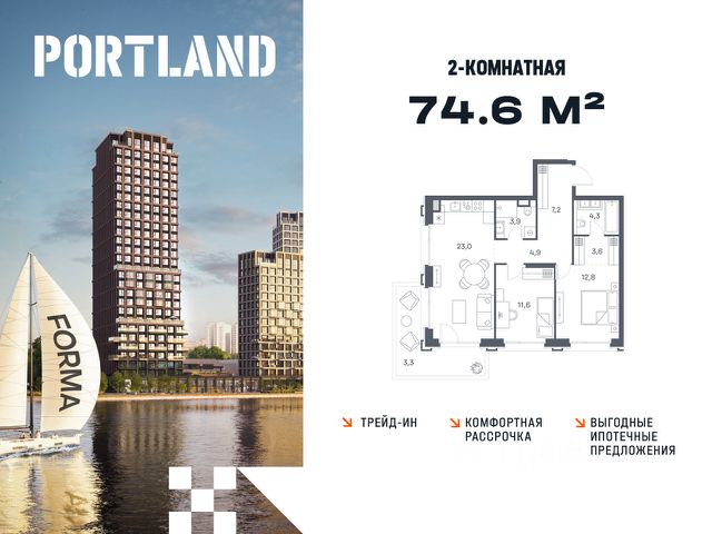 Цены указаны с условием 100% оплаты и стандартной ипотеки. Продаётся 2-к. квартира, 9 этаж в жилом комплексе бизнес-класса Portland от девелопера FORMA. ЖК расположен на берегу Москвы-реки в северной части района Печатники в акватории Южного речного порта. Основные преимущества проекта: • Самая протяженная береговая линия реки в Москве 13 км. • Вид на реку в сторону запада панорамные окна на самое широкое водное пространство Москва-реки (900 м) и на закат. • 95% квартир с видом на воду. • К Portland не примыкает крупных автомагистралей - отсутствие фонового шума дорог. • В перспективе ближайших 11 лет на территории района запланировано грандиозное преобразование и комплексное развитие. • Собственная набережная длиной 412 м., которая после завершения строительства сомкнется с эко-парком Печатники. • Прямой выход к воде и отсутствие проезжей части между Portland и береговой линией. • Инфраструктурное разнообразие: супермаркеты, крупные торговые центры, рестораны, кафе, фитнес-клубы, бьюти-салоны, компании сферы услуг и многое другое. • Собственная школа на 300 мест и детский сад на 275 мест. • Паркинг на 650 м/м • Транспортная вседоступность: метро, авто, велосипед, речной трамвай, канатная дорога • 15 мин. пешком до м. Печатники, 15 мин. на авто до ТТК, 20 минут на авто до Садового кольца Продам квартиру в новостройке рядом с метро Люблино.