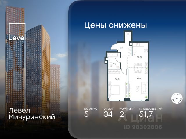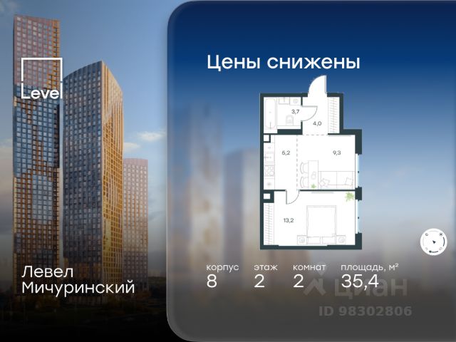 Скидка 35% на все квартиры в жилом комплексе Левел Мичуринский, этапы 3 и 4 (корпуса 7-13). Цена указана с учётом скидки при 100%-й оплате, несубсидированной ипотеке, рассрочке (кроме программы "Рассрочка 0%"). В жилом квартале, расположенном на границе с природным заказником "Долина реки Очаковки", продаётся 2-комнатная квартира площадью 42.10 кв.м без отделки. Квартира расположена на 6 этаже 48-этажного корпуса 8 в жилом комплексе бизнес-класса Левел Мичуринский (компания Level Group/Левел групп). Отличная транспортная доступность: - от 10 мин. пешком до станции метро "Мичуринский проспект" - 15 мин. пешком до станции метро "Аминьевская" - 7 мин. на авто до МКАД - 10 мин. на авто до ТТК - 15 мин. на авто до Москва-Сити Продуманный архитектурный проект: - Выразительная архитектура от известных бюро: корпуса 1-6 - бюро СПИЧ, корпуса 7-13 - архитектурное бюро Анатолия Борисова; - Из окон открываются живописные виды на парки, Москва-Сити и МГУ; - Высокие потолки до 6,35 м; - Стильные лобби с окнами в пол и высокими потолками до 4,7 м; - С каждого этажа дома на лифте можно спуститься в подземный отапливаемый паркинг. Расположение: Жилой комплекс Левел Мичуринский строится в одном из самых зелёных районов Москвы - Очаково-Матвеевское. Этот уголок столицы идеален для поддержания здорового образа жизни. В шаговой доступности от проекта находятся заказник "Долина реки Очаковки" - 1 мин. пешком и Очаковский парк - 7 мин. пешком. На велосипеде можно добраться до таких парков, как "Событие", парк Олимпийской деревни, парк 50-летия Октября и парк Школьников. В 15 минутах езды на авто расположено более 30 детских садов (из них 14 в пешей доступности), 32 школы (из них 13 в пешей доступности) и 14 вузов. Также в ближайшем окружении - более 25 медицинских учреждений, 11 спортивных клубов и 22 продуктовых супермаркета. Внутренняя инфраструктура: На территории жилого комплекса строится три детских сада и школа. На первых этажах домов откроется супермаркет, фитнес-центр, ресторан, кафе и другие сервисы. Подземные этажи займут паркинги: трёхуровневые - в этапах 1 и 2, одноуровневый - в этапах 3 и 4. Преимущества проекта: - 4,5 га благоустроенной территории с видовым мостом, уличным кинотеатром, зонами для тихого отдыха, работы, уличных тренировок, площадки для петанка, футбола, настольного тенниса и пляжного волейбола. - Дизайнерские лобби с панорамным видом на двор, мойками для лап животных и комфортными зонами ожидания. - Безопасность жителей: круглосуточное видеонаблюдение всех зон общего пользования (лобби, лифты, паркинги, детские площадки), система контроля доступа, управление видеодомофоном через мобильное приложение, единый ключ доступа на территорию жилого комплекса. - Технологии и комфорт: высокоскоростной вайфай в лобби и на придомовой территории, автоматическая система контроля и учёта ресурсов, абонентская связь с консьержем, распознавание номеров автомобилей при въезде в паркинг и выезде из нег