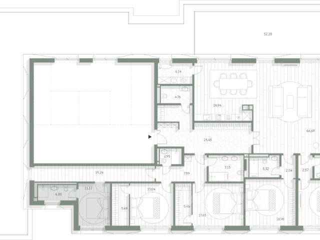 Продуманный сад, скрытый от посторонних глаз, арт-площадка для детей. Уникальной особенностью, связующей прошлое с настоящим, стал пешеходный променад. Он будет воссоздан по историческим чертежам легендарного Фёдора Шехтеля, главного архитектора русского модерна. Все это - создает оазис умиротворения среди насыщенного городского ритма столицы, сохраняя наследие и задавая новый стандарт жизни в делюкс классе.