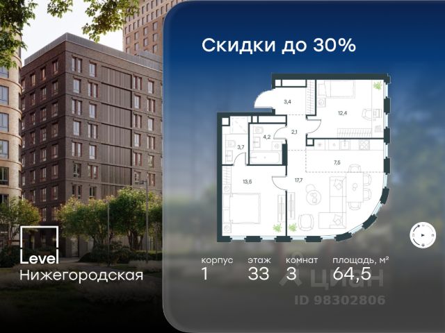 Номер лота: 283 Продается трехкомнатная квартира в ЖК "Проспект 39" по адресу Москва, ЮВАО, Рязанский проспект, вл. 39, к. 2. Общая площадь квартиры - 65,70 кв.м., этаж 25. Стоимость квартиры - 21 905 232 р. Продаётся без отделки. Жилой комплекс состоит из пяти монолитных башен высотой 32 этажа. В архитектуре проекта используются приемы и материалы, отражающие стиль индустриализации, характерный для данной локации. Фасады оформлены с помощью плитки, имитирующей красный состаренный кирпич, и металлических элементов дымчато-чёрного оттенка. Верх башен выполнен из композитных зеркальных панелей. Ключевые преимущества: - Дом класса комфорт-плюс - Входные группы дополнены зоной ожидания - Развитая коммерческая инфраструктура - Закрытый минималистичный двор - Охрана и видеонаблюдение территории 24/7 - Хорошая транспортная доступность позволяет быстро добраться до центральной части столицы Внутренняя отделка: - Урбанизм и современный минимализм - Трендовый стиль лофт, аскетичные и элегантные линии - Точечные светильники и стильный индивидуальный номер у каждой квартиры - Тёплая входная группа, декорированная гипсовыми 3D-панелями с подсветкой - Светлый пол из венецианского керамогранита в стиле "тераццо" и потолки типа грильято - Стены выполнены из итальянского керамогранитного слэба Расположение: - 3 минуты до станции метро "Стахановская" - 25 минут до станций метро "Выхино" и "Рязанский проспект" - Удобный выезд на Рязанский проспект Инфраструктура: Первый этаж жилого комплекса отведен под коммерцию, здесь будет всё, что сделает жизнь в комплексе удобной: аптеки, магазины, салоны красоты. Рядом с комплексом находится торгово-развлекательный центр "Город". В ТРЦ доступны: семейный и строительный гипермаркеты, фудкорт, рестораны, детский развлекательный парк, магазины одежды и обуви, аптеки, ювелирные салоны, оптики, студии красоты, химчистка, отделения банков. Зелёный оазис в городе: В 15 минутах ходьбы от жилого комплекса расположена большая зелёная зона - Кусковский лесопарк. Комплекс находится рядом с музеем-заповедником, усыпанным 7 прудами. На территории лесопарка расположились усадьбы, музеи, храмы, имеющие историческую ценность для всего района. Узнать больше о комплексе можно позвонив по телефону офиса продаж или посетив офис продаж лично. Продам квартиру в новостройке рядом с метро Перово.