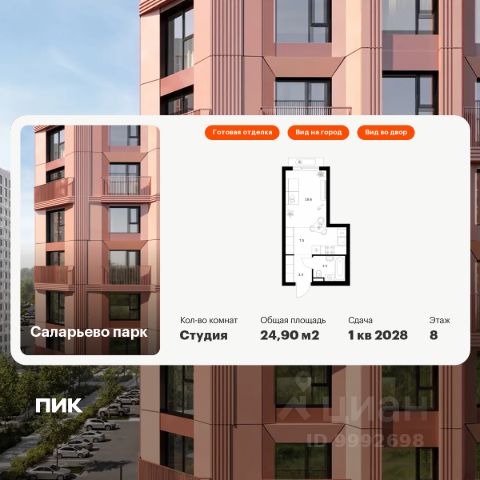 Продаётся 2-комн. квартира площадью 46,4 кв.м на 8 этаже 16 этажного дома (Корпус 57.4, Секция 4) проекта ПИК Саларьево парк. Светлый просторный подъезд на уровне земли, функциональная планировка, большие окна, предчистовая отделка. Жилой район "Саларьево парк" расположен в Новой Москве, в четырёх километрах от МКАД по Киевскому шоссе. Две станции метро: "Саларьево" и "Филатов луг", — находятся в пешей доступности от проекта. Дойти до них можно за 510 минут. В квартале уже создана качественная среда, где есть абсолютно всё для полноценной жизни, работы и отдыха. Благодаря удобному расположению проекта всё важное будет рядом: детские сады, школы, кафе и рестораны, шопинг в торговых центрах, фитнес и даже аэропорт. Все корпуса в квартале гармонично сочетаются, образуя единую городскую среду. Между собой их объединяет невысокая этажность и натуральная цветовая гамма. Здесь приятно гулять и проводить время на улице всей семьёй. В "Саларьево парке" создана уникальная образовательная среда, включающая в себя шесть школ, рассчитанных на 6 250 учеников. Две из них уже открыты, их посещает 2 300 детей. Также на территории "Саларьево парка" находится 12 детских садов, один из которых с бассейном. Сейчас уже открыты 7 садов. В "Саларьево парке" открыта уникальная игровая площадка — PlayHub "Оригами". Здесь есть ручей, горка-труба и рельефные холмы. Взрослые смогут отдохнуть в уютном кафе, пока дети играют. Также на территории проекта есть SportHub — большая спортивная зона, разделённая по интересам и возрастам. Здесь можно заниматься разными видами спорта: футболом, баскетболом, волейболом и стритболом. Зимой центральную часть площадки превращают в каток. Во дворах-парках жилого квартала есть места для отдыха, детские и спортивные площадки. На первых этажах домов расположены магазины, кафе и полезные сервисы. Также вблизи проекта есть несколько масштабных торговых центров. До ТЦ "Саларис" пять минут пешком, до "Рио", Metro Cash & Carry и "Леруа Мерлен" — пять минут на автомобиле. Артикул 1018597 (Застройщик ООО "Специализированный Застройщик "Тирон") Квартира в новостройке рядом с метро Саларьево.