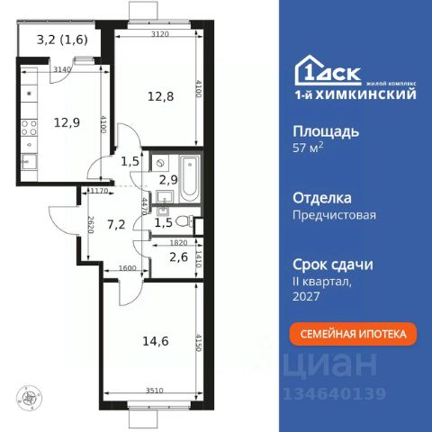 Рассрочка 0% от застройщика! Продается двухкомнатная квартира в квартале "Дружба" жилого комплекса "Мечта". Общая площадь квартиры: 59.54 кв. м, этаж 5 из 5. Срок сдачи: 4 квартал 2027 г. Отделка: Чернова ОСОБЕННОСТИ: - Просторная кухня-гостиная - Продуманная планировка - Широкоформатные окна - 2 спальни - 2 санузла - Высота потолка: 2.7 метра Квартал "Дружба" состоит из пяти пятиэтажных домов с несколькими подъездами. Каждый дом оборудован широкими окнами, которые обеспечивают максимальный доступ естественного света и открывают прекрасный вид на окружающую природу. Квартал отличается большими застеклёнными лоджиями, которые позволяют наслаждаться свежим воздухом и красивым видом, не покидая своего жилища. Жилой комплекс "Мечта" расположен в 23 км от МКАД по Дмитровскому или Ленинградскому шоссе. ТРАНСПОРТНАЯ ДОСТУПНОСТЬ: - 15-20 минут на общественном транспорте до МЦД-1 "Лобня" - 30-35 минут на общественном транспорте до метро "Физтех" - 45-50 минут до станций метро "Савеловская" или "Белорусская" - 30 минут на автомобиле до Москвы Инфраструктура включает в себя муниципальную школу и детские сады, кабинет врача общей практики, множество кафе и ресторанов, а также различные спортивные и детские площадки. В пешей доступности от жилого комплекса расположены лес и три реликтовых озера — Долгое, Круглое и Нерское, а также реки Альба, Уча и Волгуша. Территория жилого комплекса закрыта для посторонних, находится под охраной и патрулируется. На въезде расположен КПП. Камеры видеонаблюдения работают круглосуточно на всей территории. Вы и ваши дети будете чувствовать себя в безопасности.