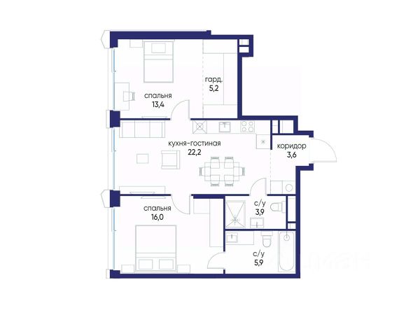 - Планировка свободная (предлагаемая застройщиком):