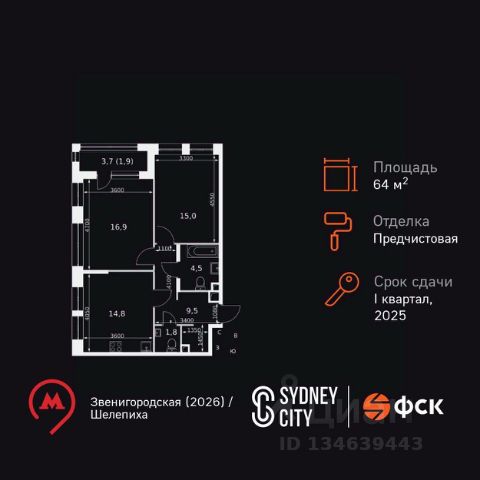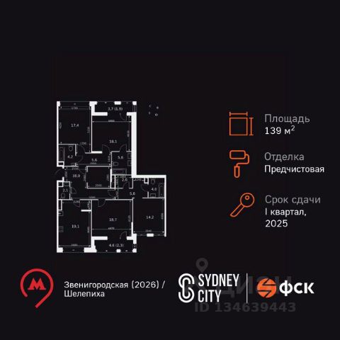 Продается прекрасная, уютная, квартира в жилом комплексе бизнес класса "Сидней Сити". Корпус 2.1. Квартира с полной, дизайнерской отделкой "КЛАССИКА СВЕТЛАЯ БИЗНЕС ПЛЮС". Окна выходят на северо-запад и юго-восток. Планировка включает в себя: две изолированные спальни, кухня-столовая, два санузла.