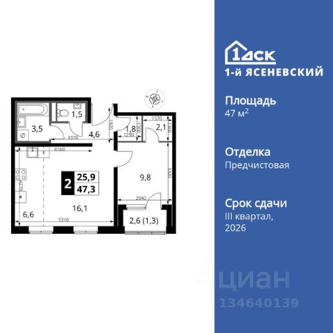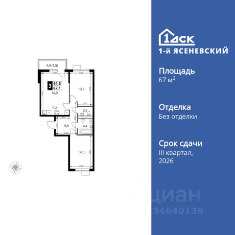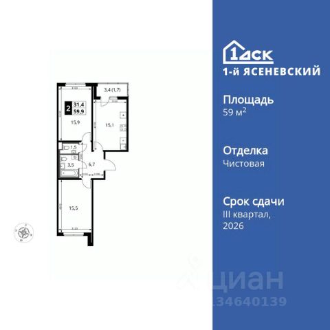 Прямая продажа от застройщика! Жилой Комплекс класса Комфорт Плюс. Продаётся 1-к квартира номер 531 общей площадью 34.8 кв.м. на 12-м этаже 18 этажного дома. Отделка Whitebox. Особенности квартиры: - Квартиры рядом с метро - м. Корниловская 9 мин пешком - 63 га лесопарка за окнами - Школа c it-кластером и бассейном. 2 детских сада - Мастер-зона с гардеробной. Просторное место для отдыха и удобного хранения вещей. - Линейная планировка - максимальная функциональность и удобство. - Гардеробная - удобство для хранения и организации вещей. - Ниша под шкаф - компактное и удобное место для вещей. - Лоджия - уютное место для отдыха и тишины. Квартира с предчистовой отделкой (White box). Вам не придется заниматься черновыми и трудоёмкими работы, а чистовую отделку и дизайн - сделайте на свой вкус. Информация о комплексе: В жилом комплексе комфорт-плюс класса "1-го Ясеневского" доступны преимущества двух стилей жизни. Ведь в пешей доступности метро, школа с 25-метровым бассейном и IT-кластером и при этом целых 63 га благоустроенного Троицкого лесопарка под окнами, где так приятно дышать свежим воздухом и слушать пение птиц. Собственная закрытая территория "1-го Ясеневского" представляет собой уютный оазис. Здесь и зеленый освещенный бульвар для прогулок, система велодорожек, маленькая городская площадь, кафе, пекарни и кофе поинты. А еще дворы без машин и многоэтажная парковка. Изюминка территории - фруктовые деревья во дворах и городские сады. "1-й Ясеневский" - всего в 1 км от МКАД, на территории новой Москвы. Жилой комплекс, где есть все необходимое для современного человека. Транспортная доступность: До метро "Корниловская" - 12 минут пешком До метро "Тютчевская" - 25 минут пешком До метро "Теплый стан" - 10 минут на транспорте До метро "Ольховая" - 30 минут на общественном транспорте Личный автотранспорт: Выезд на Калужское шоссе - 500 м МКАД - 1 км Внутренняя инфраструктура: ЖК "1-й Ясеневский" можно назвать идеальным местом для жизни семьи с детьми. Здесь буквально за домом находится Троицкий лесопарк - излюбленное место прогулок молодых родителей. А во внутренних дворах под детские площадки выделены специальные зоны. Они оборудованы всем, что нужно для счастливого детства: современными и максимально безопасными качелями, песочницами и лазалками. Оборудование и игровые сценарии на детских площадках спроектированы вместе с командой детских психологов для правильного развития ребенка и для повышения их интереса. Также рядом с домом два детских садика, один из которых уже построен и школа на 1100 мест. Школу по праву можно назвать образцовым учебным заведением. В ней закладываются основы успешного будущего. Здесь есть класс робототехники, IT-кластер, 25-метровый бассейн и прекрасно оборудованные спортзалы.