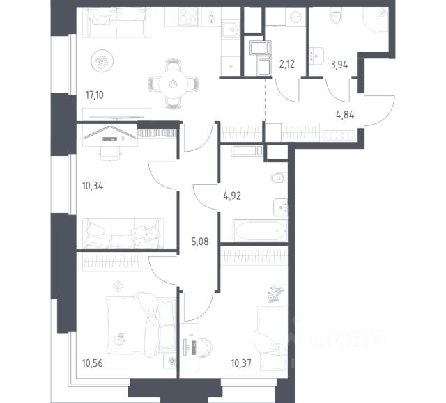 Строим кварталы для жизни с заботой о будущем. Предлагаются 2-комнатные апартаменты бизнес-класса площадью 55,07 кв.м в корпусе 2.2 на 15-м этаже, в жилом комплексе "Тропарево Парк". Проект строится полностью с отделкой, которая включает ламинат, обои под покраску, натяжной потолок. Установлены двойные стеклопакеты увеличенного формата до 180 см, которые не только сохраняют тепло в доме, но и пропускают много солнца, делая комнаты светлее. Стены в ванной и санузлах отделаны керамогранитом под мрамор, установлена вся нужная сантехника. Для стиральной машины уже предусмотрено место. Прописка не предусмотрена в рамках юридического статуса - апартаменты. Приобрести апартаменты возможно по специальным акциям от застройщика, с текущими условиями акций можно ознакомиться в блоке "Акций". Цена динамическая и может отличаться, уточняйте актуальность у застройщика. "Тропарево Парк" — комплекс апартаментов бизнес-класса рядом с Ленинским проспектом, в Новой Москве. Находится всего в 10 минутах пешком от станции метро "Румянцево". Включает 7 жилых корпусов высотой от 16 до 23 этажей, приватные дворы-сады, обширную зеленую территорию с общественными пространствами. Из части апартаментов открываются виды на Тропаревский лесопарк, расположенный рядом.