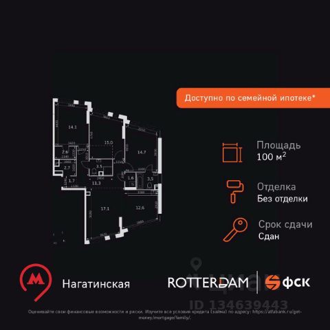 Прямая продажа от застройщика! Жилой Комплекс бизнес-класса. Продаётся 4-к квартира номер 2 общей площадью 100.4 кв.м. на 2-м этаже 29 этажного здания. Без отделки. Цена с учётом скидки. Особенности квартиры: - Мастер-зона с гардеробной. Просторное место для отдыха и удобного хранения вещей. - Мастер-зона с санузлом. Уют и комфорт в одном пространстве. - Угловая планировка - больше пространства для ваших идей. - Мало квартир на этаже - уединение и тишина. - Окно в ванной - натуральное освещение для уюта и комфорта. - Увеличенная ширина окна/окон - больше света и визуального простора. - Увеличенное количество окон - дополнительное освещение и свежий воздух. - Угловое остекление - свет и воздушность в каждой комнате. - Гостевой санузел - комфорт и удобство для ваших гостей. - Душ помимо ванной - дополнительное удобство для вашей семьи. - Постирочная - организуйте пространство для стирки и сушки вещей. - Гибкая планировка - создайте пространство по своему вкусу. - Место для игры/занятия спортом - идеальное пространство для активных детей. - Просторная мягкая зона - комфорт и уют для отдыха всей семьи. - Возможность добавить спальное место - дополнительный комфорт для гостей. - Гардеробная - удобство для хранения и организации вещей. Информация о комплексе: В ЖК Роттердам отличное расположение, которое позволит вам выбирать свой сегодняшняшний маршрут и транспорт исходя из настроения, целей и погоды. Отсюда удобно добираться в центр как на метро станция находится в пешей доступности, так и на автомобиле. Варшавское шоссе связывает жилой комплекс с ТТК, а через Люсиновскую и Мытную улицы с Садовым кольцом. В качестве альтернативного маршрута можно использовать Нагатинскую набережную: дорога вдоль Москва-реки приведет к Кремлю и Павелецкому вокзалу. Для неспешной поездки предусмотрены трамвайные маршруты, а в теплое время года веломаршруты вдоль реки. Транспортная доступность: Всего в 5 минутах пешком до метро Нагатинская и 8 минутах от МЦК Верхние Котлы. Рядом Аэроэкспресс до метро Домодево. До ТТК 2,2 км и 4,9 км до Садового кольца. Внутренняя инфраструктура: Если вы ищете идеальный баланс между отдыхом и работой и обладаете активной жизненной позицией - ЖК Роттердам вам понравится. В ЖК: зоны коворкинга, плейхаб и детские площадки для отдыха всей семьей. Близость к деловому центру Москвы, в окружении 5 парков, рядом спортивные и развлекательные центры Если вы любите живописные виды и долгие прогулки - ЖК Роттердам - отличный вариант для вас, так как он расположен прямо на Нагатинской набережной с выходом на Москву реку! В ЖК Роттердам соблюден баланс между высоткой и малоэтатажным зданием, которое не потеряло ощущение уюта и не создает впечатление городских джунглей Если вы любите быть на высоте и без ограничений - выбирайте верхние этажи Для тех, кто ценит комфорт и собственное время Для тех, кто ценит комфорт и личное пространство Для тех, кому важен комфорт, безопасность и личное пространство на пре
