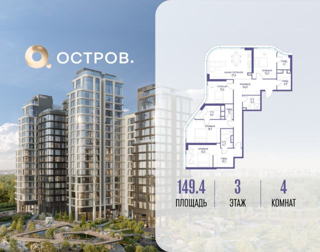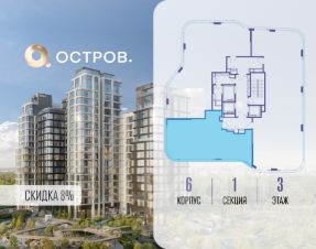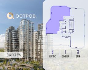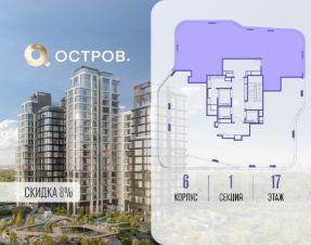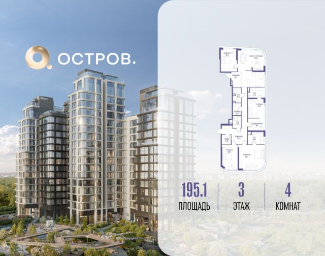 Продаётся 4-комн. квартира от застройщика: общая площадь 166.30 м², жилая 62.50 м², кухня 52.10 м², 13-й этаж, жилой квартал "Остров 12", корпус 6 (секция 1). Срок сдачи: 1 квартал 2029 года. 3 совмещенных санузла. В жилой зоне 2 больших окна на одну сторону, хорошая инсоляция. Позвоните сейчас и забронируйте квартиру! ОСТРОВ от Донстрой - жилой комплекс на западе Москвы, в Мневниковской пойме. Уникальное преимущество комплекса - в том, что он обособлен от города рекой и природным парком (650 га). Благодаря природному окружению эта территория имеет лучший экологический рейтинг в столице. Кварталы ОСТРОВА объединены ландшафтным дизайном в единое пространство - с набережными и Центральным бульваром. На ОСТРОВЕ любые объекты, необходимые для полноценной жизни и отдыха, находятся на расстоянии 15-минутной прогулки. Торговый центр и супермаркеты, кафе и рестораны, фитнес, салоны красоты, школы и детские сады. А также крупнейший в Москве спортивный кластер.