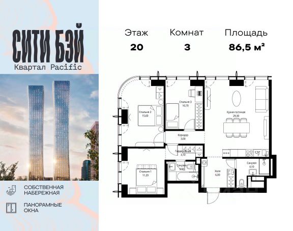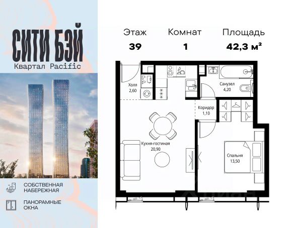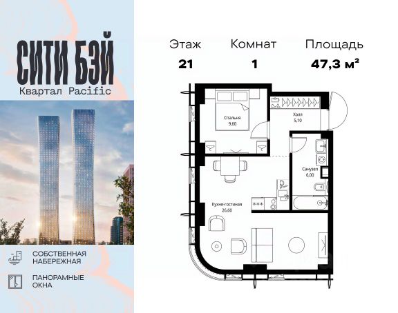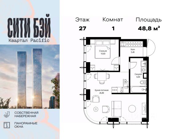 Прямая продажа от застройщика. Продаётся 2-комнатная квартира общей площадью 58.50 м² без отделки в ЖК Сити Бэй, квартале Пасифик, на 8-м этаже 59 этажного дома. Концепция жилого комплекса Сити Бэй - настоящий город в городе с отлично развитой инфраструктурой и собственной благоустроенной набережной. На территории жилого комплекса расположено пять кварталов - Атлантик, Пасифик, Индиан, Норс, Cliff. Жилой квартал Сити Бэй отличается оригинальной концепцией и выделяется среди других проектов такими характеристиками как: - Архитектура, - Виды из окон, - Природное окружение, вызывая гордость у жителей и восхищение у прохожих. Вся жизнь района Покровское-Стрешнево строится вокруг водных объектов: - Пойма реки Сходни с уникальной экосистемой, - Речка Химка и Химкинское водохранилище, - Москва-река, - Канал имени Москвы. Кругом вода, и местные с удовольствием этим пользуются. А сразу за рекой - центр водного спорта в Строгино с вейк-парком и яхт-клубами. Помимо воды, здесь очень много зелени: - Рядом Сходненский ковш памятник природы, естественный амфитеатр глубиной 40 метров; - Парк при усадьбе Братцево с фруктовым садом; - Дубовая роща "Маяк", - Алешкинский лес; - Лесопарк Покровское-Стрешнево с пляжами и бобрами. Главные транспортные артерии района: - Волоколамское шоссе, - Таганско-Краснопресненская линия метро и МЦД-2. Всего за 20 минут можно добраться до центра на машине или метро, а МЦД связывает ЖК Сити Бэй с северными, восточными и юго-восточными районами. Компания MR предлагает своим клиентам специальные условия приобретения квартир в рамках программ ипотечного кредитования от банков-партнеров.