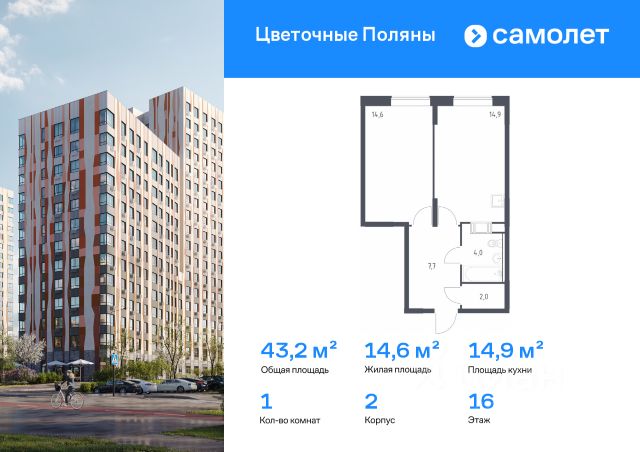 Строим кварталы для жизни с заботой о будущем. Предлагается 2-комнатная квартира комфорт-класса 56,7 кв.м в корпусе 2 на 16 этаже, в ЖК "Цветочные Поляны" Квартира без отделки. Доступность опции "отделка" и возможность комплектации мебелью и декором уточняйте у застройщика. Приобрести квартиру возможно по специальным акциям от застройщика, с текущими условиями акций можно ознакомиться в блоке "Акций". Цена динамическая и может отличаться, уточняйте актуальность у застройщика. "Цветочные Поляны" — жилой комплекс в Новой Москве, рядом с Валуевским и Ульяновским лесопарками. В квартале есть лесопарковая зона площадью 5 гектаров, где можно заниматься спортом, кататься на велосипеде и просто гулять среди деревьев. Также в пешей доступности — Валуевский лесопарк, дойти до которого можно вдоль "берега" декоративного сухого ручья. Те, кто любит отдых у воды, всегда могут прогуляться до реки Незнайки. В "Цветочных Полянах" предусмотрена образовательная инфраструктура для семей с детьми: уже построены первая школа и детский сад, в планах — строительство еще двух детских садов и второй школы. В квартале уже работают супермаркеты, кафе, салоны красоты, а в будущем появится свой торговый центр. Дома высотой до 22 этажей построены по монолитной технологии. Рисунок на фасадах отсылает к традиционному искусству Староселья — плетению кружев из стекляруса.