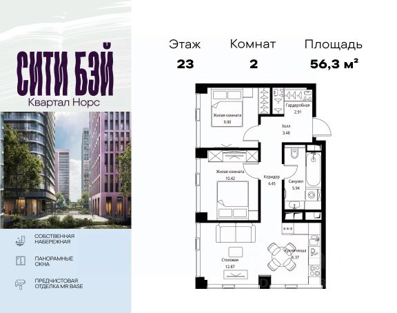 Прямая продажа от застройщика. Продаётся 2-комнатная квартира общей площадью 68.36 м² с предчистовой отделкой в ЖК Сити Бэй, квартале Норс, на 8-м этаже 27 этажного дома. Концепция жилого комплекса Сити Бэй - настоящий город в городе с отлично развитой инфраструктурой и собственной благоустроенной набережной. На территории жилого комплекса расположено пять кварталов - Атлантик, Пасифик, Индиан, Норс, Клиф. Жилой квартал Сити Бэй отличается оригинальной концепцией и выделяется среди других проектов такими характеристиками как: - Архитектура, - Виды из окон, - Природное окружение, вызывая гордость у жителей и восхищение у прохожих. Вся жизнь района Покровское-Стрешнево строится вокруг водных объектов: - Пойма реки Сходни с уникальной экосистемой, - Речка Химка и Химкинское водохранилище, - Москва-река, - Канал имени Москвы. Кругом вода, и местные с удовольствием этим пользуются. А сразу за рекой - центр водного спорта в Строгино с вейк-парком и яхт-Клубами. Помимо воды, здесь очень много зелени: - Рядом Сходненский ковш памятник природы, естественный амфитеатр глубиной 40 метров; - Парк при усадьбе Братцево с фруктовым садом; - Дубовая роща "Маяк", - Алешкинский лес; - Лесопарк Покровское-Стрешнево с пляжами и бобрами. Главные транспортные артерии района: - Волоколамское шоссе, - Таганско-Краснопресненская линия метро и МЦД-2. Всего за 20 минут можно добраться до центра на машине или метро, а МЦД связывает ЖК Сити Бэй с северными, восточными и юго-восточными районами. Компания MR предлагает своим клиентам специальные условия приобретения квартир в рамках программ ипотечного кредитования от банков-партнеров.