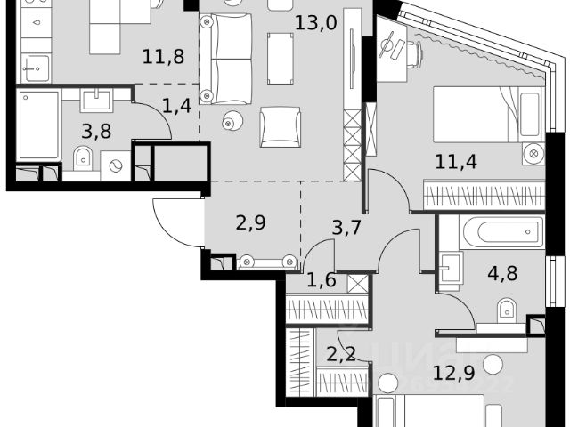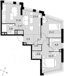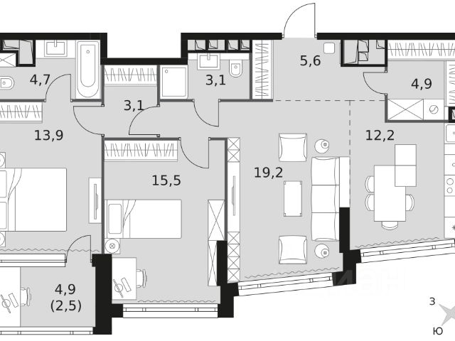 [Забронировано] Гибкие программы рассрочки: 0% без переплат и удорожания; первый взнос от 10%. • Уникальная, нетипичная планировка с детально продуманными функциональными зонами • Просторная прихожая с гостевым санузлом, отделяющая входную группу от основной части квартиры • Большая кухня-гостиная с тремя панорамными окнами • Приватная мастер-спальня площадью почти 20 кв. м с двумя панорамными окнами • Просторная ванная комната с окном в мастер-спальне О проекте FIVE TOWERS — первый жилой небоскрёб на Ленинском проспекте и самый высокий дом столицы за пределами делового кластера "Москва-Сити". Премиальный небоскрёб представляет собой ультрасовременное, высокотехнологичное здание, идеальный синтез стилей культовых высоток Москвы и небоскребов Нью-Йорка и поражает воображение уникальными видами, монументальной роскошью и совершенством форм. Величественная панорама, открывающаяся из окон вашей квартиры, завораживает: легендарные сталинские высотки, шпиль главного корпуса МГУ, "Москва-Сити", спорткомплекс "Лужники". Окружение 75-этажный жилой комплекс премиум-класса расположен в историческом Донском районе. Транспортная инфраструктура проекта сделает жизнь резидентов FIVE TOWERS комфортной и продуманной: удобные выезды на ТТК и Садовое кольцо, 10 минут до метро "Ленинский проспект", 11 минут на МЦК до Москва-Сити. Рядом расположены крупные деловые и бизнес-центры, а в шаговой доступности — 500 га парков, образуемых Музеоном, Парком Горького и парком "Воробьевы горы". Инфраструктура Архитектурное бюро Олега Клодта разработало дизайн общественных пространств FIVE TOWERS: гранд-лобби, камерную библиотеку c камином и лифтовую зону. Все необходимые сервисы сосредоточены на первых этажах небоскрёба: кафе, винотека, салон красоты, фитнес и детский клуб. Приватный Sky Club 49 — респектабельный лаундж с открытой террасой и ограниченным доступом на 49 этаже — только для резидентов. Квартиры в FIVE TOWERS Все квартиры в FIVE TOWERS будут сданы с предчистовой отделкой (white box). Это позволит будущим резидентам комплекса сосредоточиться на творческой части ремонта, не связанной с организацией черновых работ. В жилом небоскребе FIVE TOWERS запланировано 596 премиальных квартир и 87 типов планировочных решений, которые можно адаптировать под личные запросы и сценарии проживания. В комплексе премиум-класса представлены не только двух- и трехкомнатные квартиры с угловым остеклением, но и однокомнатные с видом на две стороны и трехкомнатные квартиры с видами на три стороны, что является редким предложением на рынке недвижимости.