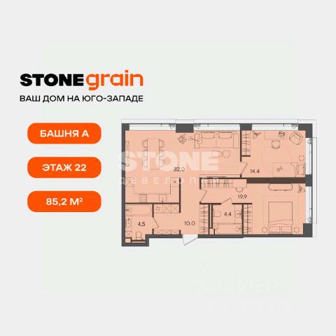 В продаже эргономичная студия с большой ванной комнатой и приватной, светлой спальней с панорамными окнами, выходящими на южную сторону. Возможность организовать угловую кухню с мягкой зоной отдыха позволит сделать жилье еще более уютным и функциональным. Студия - идеальный выбор для студента, а также популярный формат квартир для сдачи в аренду. Жилой комплекс бизнес+ класса STONE Grain находится на Юго-Западе Москвы в Обручевском районе. Расположение вблизи двух станций метро и ключевых транспортных магистралей обеспечивает быстрый доступ к центру столицы и соседним районам: - 2 мин. до м. "Калужская" и "Воронцовская" - Удобный выезд на ул. Обручева и ул. Профсоюзную - 2,5 км до Ленинского проспекта - 6 км до ТТК и МКАД - 10 км до Садового кольца и Рублёвского шоссе - 30 мин. на автомобиле до "Москва-Сити", Лужников и МГУ Проект расположен в районе с развитой образовательной и социальной базой. Рядом с жилым комплексом находятся ведущие вузы Москвы, лучшие детские сады и школы. Среди других особенностей - зеленое окружение, близость к Воронцовскому парку. Проект отличает выверенная архитектура от Kleinewelt Architekten. Башня А высотой в 45 этажей станет архитектурной доминантой с выразительными поясами балконов галерейного типа и эксклюзивными лотами со вторым светом. Камерная 20-этажная башня Б со скатной крышей будет включать двухуровневые квартиры с террасами. На закрытой благоустроенной территории разместятся игровые площадки для детей разных возрастов, workout-зона, павильоны для работы на открытом воздухе. Жители также смогут воспользоваться дополнительными зонами отдыха и инфраструктурой на территории, прилегающей к офисному кварталу класса А STONE Калужская. Комфортный микроклимат в квартирах обеспечивают современные инженерные решения. Для удобства жителей предусмотрен двухуровневый подземный паркинг на 270 машиномест. STONE - девелопер коммерческой и жилой недвижимости классов бизнес и премиум в Москве с 19-летним опытом. Сегодня занимает лидирующую позицию на офисном рынке (рейтинг РБК). В портфеле девелопера представлено 3 млн кв. м построенных, строящихся и проектируемых объектов, из которых более 1 млн кв. м находятся в стадии строительства. Компания имеет самый масштабный проектный портфель офисной недвижимости класса А на московском рынке (данные NF Group) и возглавляет топ устойчивых девелоперов, согласно исследованию FResearch - Forbes. В настоящий момент девелопером представлено 16 бизнес-центров класса А, а также 3 жилых комплекса бизнес+ класса. ID.28618