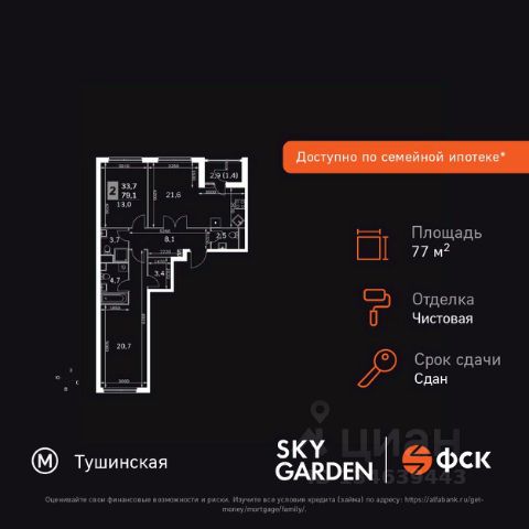 Прямая продажа от застройщика! Жилой Комплекс бизнес-класса. Продаётся 2-к квартира номер 443 общей площадью 61.6 кв.м. на 14-м этаже 28 этажного здания. Чистовая отделка. Цена с учётом скидки. Особенности квартиры: - Организуем показ в удобное для вас время! - Мастер-зона с гардеробной. Просторное место для отдыха и удобного хранения вещей. - Распашная планировка - отличное сочетание удобства и свободы. - Увеличенная ширина окна/окон - больше света и визуального простора. - Постирочная - организуйте пространство для стирки и сушки вещей. - Раздельный санузел - больше удобства для всех членов семьи. - Гибкая планировка - создайте пространство по своему вкусу. - Место для игры/занятия спортом - идеальное пространство для активных детей. - Можно оборудовать 2 или более рабочих места - пространство для нескольких человек. - Можно оборудовать рабочее место - комфорт для работы и учёбы. - Просторная мягкая зона - комфорт и уют для отдыха всей семьи. - Линейная кухня - функциональность и практичность в одном решении. - Ниша под шкаф - компактное и удобное место для вещей. - Лоджия - уютное место для отдыха и тишины. Квартира с чистовой отделкой. Раскройте свою индивидуальность в создании своего уникального проекта, а трудоемкий ремонт мы возьмем на себя! Вы идете в ногу со временем и предпочитаете современные, универсальные дизайнерские решения? Или вы любитель строгой лаконичной классики? Тогда наши интерьеры придутся вам по душе! Выбирайте то, что ближе лично Вам и реализуйте свои задумки вместе с нами! Информация о комплексе: ЖК "Скай Гарден" в Покровском-Стрешнево: гармония природы и мегаполиса. Живите среди зелени одноимённого парка, рек и каналов с чистым воздухом, сохраняя все преимущества городской инфраструктуры. Идеальный баланс для тех, кто ценит природу без компромиссов в комфорте. Транспортная доступность: Всего в 12 минутах пешком до м. Тушинская и 15 минутах до станции Тушинская МЦД. На автомобиле: 2 км до Волоколамского шоссе, 2,5 км до МКАД и 15 км до Садового кольца Внутренняя инфраструктура: К вашим услугам игровые площадки для детей с горками и фонтанами. Йога на газоне, воркаут, велопарковки. На территории: поликлиника, аптека, супермаркет, зоны отдыха. Игровая комната в лобби, хранилище для велосипедов в подъездах. Рядом: кафе, пекарня, мастерские, секции. Парк 3,5 га с набережной для прогулок. Всё для жизни и спорта в шаговой доступности. Квартира с чистовой отделкой: ваш стиль без ремонта. Выбирайте современный дизайн или классику - мы воплотим ваши идеи. Готовые интерьеры для уникального дома.