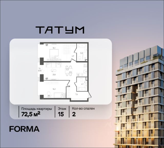 Прямая продажа от девелопера FORMA (без комиссии). Жилой квартал "ТАТУМ" бизнес-класса на Юго-Западе Москвы. О локации: 3 минуты пешком до метро "Калужская" и "Воронцовская". Район окружен зеленью: в пешей доступности 16 парков, включая Воронцовский парк в шаговой доступности. Развитая инфраструктура: 22 школы, 12 престижных вузов, 22 фитнес-клуба и 14 школ большого тенниса, а также конно-спортивный комплекс "Битца". О квартире: Площадь: 101.2 кв. м. Отделка: без отделки (свободная планировка). Вид: 15 этаж 27-этажной башни. О доме и среде: Архитектура квартала — это пять выразительных башен с закрытой территорией без машин. В каждой квартире предусмотрены джамбо-окна и балконы. Внутри квартала создана среда, где комфортно всем членам семьи: прогулочная аллея с ритейлом, дворы без автомобилей, видеонаблюдение на всей территории комплекса и безопасные покрытия. В доме предусмотрена инфраструктура для резидентов: — Коворкинг и общественная гостиная; — Фитнес-зал; — Детская игровая; — Комната матери и ребенка; — Курьерская зона с хранением посылок. Технологии комфорта: Видеонаблюдение по периметру, доступ через смартфон (умный домофон), разовые пропуска для гостей, закрытый паркинг, Wi-Fi в лифтах и паркинге. Квартира в новостройке на улице Обручева в Москве.