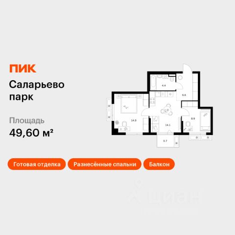 Продаётся 2-комн. квартира площадью 60,6 кв.м на 2 этаже 24 этажного дома (Корпус 68.4, Секция 1) проекта ПИК Саларьево парк. Светлый просторный подъезд на уровне земли, функциональная планировка, большие окна, c отделкой. Жилой район "Саларьево парк" расположен в Новой Москве, в четырёх километрах от МКАД по Киевскому шоссе. Две станции метро: "Саларьево" и "Филатов луг", — находятся в пешей доступности от проекта. Дойти до них можно за 510 минут. В квартале уже создана качественная среда, где есть абсолютно всё для полноценной жизни, работы и отдыха. Благодаря удобному расположению проекта всё важное будет рядом: детские сады, школы, кафе и рестораны, шопинг в торговых центрах, фитнес и даже аэропорт. Все корпуса в квартале гармонично сочетаются, образуя единую городскую среду. Между собой их объединяет невысокая этажность и натуральная цветовая гамма. Здесь приятно гулять и проводить время на улице всей семьёй. В "Саларьево парке" создана уникальная образовательная среда, включающая в себя шесть школ, рассчитанных на 6 250 учеников. Две из них уже открыты, их посещает 2 300 детей. Также на территории "Саларьево парка" находится 12 детских садов, один из которых с бассейном. Сейчас уже открыты 7 садов. В "Саларьево парке" открыта уникальная игровая площадка — ПлейХаб "Оригами". Здесь есть ручей, горка-труба и рельефные холмы. Взрослые смогут отдохнуть в уютном кафе, пока дети играют. Также на территории проекта есть СпортХаб — большая спортивная зона, разделённая по интересам и возрастам. Здесь можно заниматься разными видами спорта: футболом, баскетболом, волейболом и стритболом. Зимой центральную часть площадки превращают в каток. Во дворах-парках жилого квартала есть места для отдыха, детские и спортивные площадки. На первых этажах домов расположены магазины, кафе и полезные сервисы. Также вблизи проекта есть несколько масштабных торговых центров. До ТЦ "Саларис" пять минут пешком. Артикул 866982 (Застройщик ООО "Специализированный Застройщик "Тирон")
