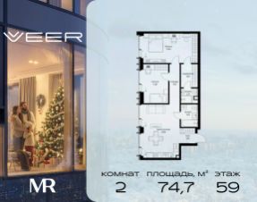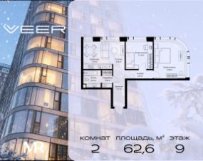 Прямая продажа от застройщика. Продаётся 2-комнатная квартира общей площадью 51.60 м² без отделки в ЖК VEER на 9-м этаже 59 этажного дома. Жилой комплекс бизнес-класса VEER от компании MR — это футуристичный мультиквартал, расположенный в престижной локации на западе Москвы. Благодаря переменной высоте башен — двух 22-этажных, 46-этажной и двух 59-этажных — возникает динамичность в силуэте комплекса, а его яркий образ вносит разноплановость в архитектурный пейзаж района. Расположение и транспортная доступность: • VEER удобно расположен в непосредственной близости от Кутузовского проспекта, обеспечивая быстрый доступ к центральным районам Москвы • Комплекс находится непосредственно напротив самого большого природного заказника в Москве - парка "Долина реки Сетунь", а за семь минут можно доехать до памятника садово-паркового искусства, Троекуровского леса. • Всего в 15 минутах - центр города, самая престижная бизнес-школа управления России "Сколково", дом творчества "Переделкино". • 18 минут пешком до м. "Давыдково" • Открытие новых станций метро в шаговой доступности в будущем Инфраструктура: Разнообразить свой день резиденты VEER смогут также проводя больше времени на свежем воздухе. Двор разделен на 4 зоны разных эмоций и действий, которые пересечены и соединены веерными прогулочными маршрутами: • Спортивная площадка устроена в глубине "Кленовой рощи" • В "Чайном домике" будет создан навес с утеплением для отдыха в любую погоду • Площадки для детей воплотятся в "Волшебный лес" с цветами, зеркалами и световым дизайном • "Центральная площадь" устроена у водного оазиса живописного пруда. Компания MR предлагает своим клиентам специальные условия приобретения квартир в рамках программ ипотечного кредитования от банков-партнеров. Продается квартира в новостройке на улице Верейская в Москве.