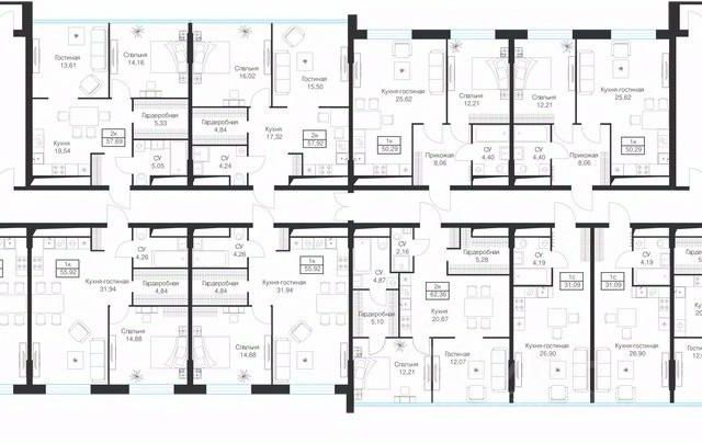 Продаются 2-комнатные апартаменты 58.87 кв.м. на 4-м этаже 20-этажного комплекса.
