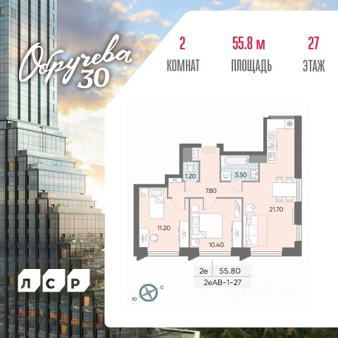 Продается 2-комн. кв-ра площадью 69.30 кв.м на 9 этаже 14 этажного монолитного дома в ЖК "ОБРУЧЕВА 30" от Группа ЛСР. "Обручева 30" - дом бизнес-класса в престижном районе ЮЗАО и шаговой доступности от станции метро "Калужская". Два корпуса неповторимой формы от бюро KAMEN Architects с уникальными форматами квартир: от двухуровневых с камином до квартир с террасой. "Клубная" инфраструктура для резидентов: студии йоги и сайкла, тренажерные залы, коворкинг-зона, конференц-залы, кинозал и детские игровые комнаты. Дом бизнес-класса "Обручева 30" возводится в Юго-Западном административном округе в районе Коньково на улице имени В. А. Обручева, видного советского ученого. В пешей доступности от "Обручева 30" находятся две станции метро: "Калужская" Калужско-Рижской линии (5 минут) и "Воронцовская" Большой кольцевой линии (10 минут). Купить квартиру с отделкой от застройщика в районе Коньково в Москве.