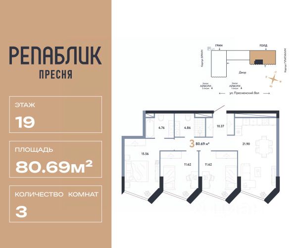 Продаётся 4 - комнатный пентхаус в готовом доме (Корпус 7), общей площадью 247.1 кв.м., на 21 этаже. О жилом комлексе Жилой квартал Lucky - это переосмысление и регенерация общественно-делового кластера площадью более 4.5 гектаров в центре Москвы. О застройщике Девелопер проекта Vesper специализируется в премиальном сегменте клубной жилой недвижимости. Портфель компании включает 22 проекта в Москве и странах Европы. Актуальные архитектурные проекты, индивидуальный дизайн, передовые технологии, качественные материалы и лучшие мировые практики воплощены в каждом доме компании. Расположение и транспортная доступность Квартал расположен на пересечении улиц 2-ая Звенигородская и Костикова, в 200 метрах от метро "Улица 1905 года". В непосредственной близости от парков, Москвы- реки, Сити и Садового кольца формируется идеальная среда для семейного проживания в мегаполисе. Архитектура Визуально квартал разделен на две части: верхний город с новыми высотными жилыми домами и нижний город с общественным пространством для инфраструктуры, где располагается новый социокультурный кластер площадью около 10 000 кв. м. Верхний город состоит из восьми жилых домов: семь 21-этажных башен и одно здание высотой 15 этажей. В восьми новых домах расположены 618 квартир. На каждом этаже 3-4 квартиры, большая часть которых имеет ориентацию на 2-3 стороны света. Из панорамных окон открываются виды на набережную Москва-реки, Сити и близлежащие парки. Знаковая архитектура, продуманные планировочные решения, изысканная отделка, инновационные инженерные решения воплощены в квартале Lucky. Инфраструктура В квартале представлена инфраструктура для всей семьи: парки и скверы, билингвальный детский сад La Berezka, собственный 600 м. игровой парк для детей, фитнес с подогреваемым бассейном на крыше, рестораны, кафе и магазины органических продуктов. В шаговой доступности от квартала расположены лучшие рейтинговые школы.