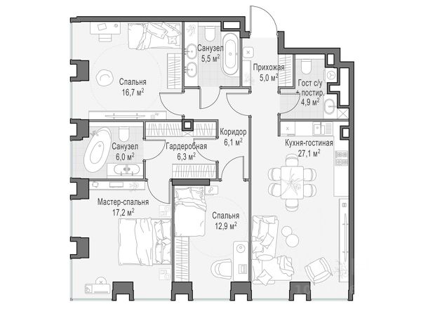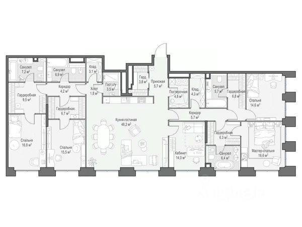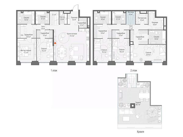 • Студии, 1-3 комнатные квартиры площадью от 32,3 м² до 286,5 м² м².