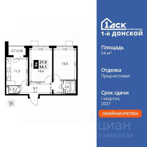 Прямая продажа от застройщика! Жилой Комплекс класса Комфорт Плюс. Продаётся 2-к квартира номер 664 общей площадью 54.1 кв.м. на 22-м этаже 24 этажного здания. Предчистовая отделка. Особенности квартиры: - МЦД-5 в пешей доступности - Квартал с собственной набережной - Свои 2 детских сада и школа - Просторная спальня, в которой можно разместить большую кровать. - Линейная планировка - максимальная функциональность и удобство. - Раздельный санузел - больше удобства для всех членов семьи. - Просторная кухня - место для семейных ужинов и кулинарных экспериментов. - Ниша под шкаф - компактное и удобное место для вещей. - Лоджия - уютное место для отдыха и тишины. Квартира с предчистовой отделкой (White box). Вам не придется заниматься черновыми и трудоёмкими работы, а чистовую отделку и дизайн - сделайте на свой вкус. Информация о комплексе: Комплекс 1-й Донской расположен в 7 км от МКАД по трассе М-4 Дон. В нем сочетаются все плюсы комфортной городской среды и природного окружения. В проекте достаточно большой процент квартир, выходящих на 2-3 стороны света. Секции-маяки формируют у зданий визуальную L-форму, что придает застройке структуру и ритмику объемов. На ощущение динамики работает и разная этажность зданий. Теплая цветовая палитра фасадов отражает природу Дона. Вечерами дома преображаются благодаря архитектурной подсветке, выгодно выделяясь на городском фоне. Природа оказывает положительное влияние на человека на всех уровнях восприятия: через зрение, запахи, звуки, тактильные ощущения. Неподалеку от ЖК Первый Донской: Ермолинский парк, Видновский лесопарк, Жуковский парк Транспортная доступность: Комплекс удобно расположен в 7 км от МКАД по трассе М-4 Дон (через Видное). Расстояние до Каширского шоссе составляет 12 км. Добраться до метро и центра Москвы позволяет развитая сеть маршрутов общественного наземного транспорта. Действующая ж/д станция Калинина Павелецкого направления в 15-17 минутах ходьбы (МЦД-5 в 2025-2026 гг). Внутренняя инфраструктура: Проект 1-й Донской соседствует с бурно развивающимся районом, основная инфраструктура которого уже сложилась. В строительстве современных жилых комплексов в округе есть свои плюсы: здесь формируется продуманная и комфортная городская среда. Что касается внутренней инфраструктуры, на территории квартала будут расположены собственные муниципальные 2 детских садика и школа, которые помогут совместить приятное с полезным. Территория комплекса пронизана целой сетью живописных пешеходных маршрутов, позволяющих попасть в любой уголок района. Основные пути, как водится, "торговые". Они проходят вдоль магазинов, кафе и других представителей коммерции и отделяются от проезжей части зеленой "фито" - стеной. Среди крупных социальных объектов предусмотрены своя поликлиника и торговый центр с примыкающей площадью для общественных мероприятий. Уют начинается с продуманного подъезда. Сквозные подъезды наполнены светом благодаря сплошному остеклению. Вход в них есть и