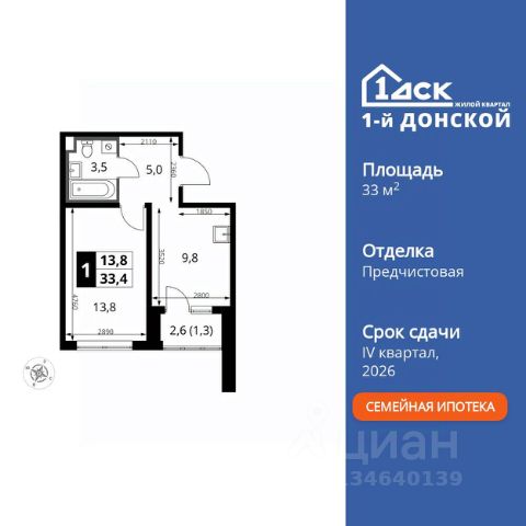 Прямая продажа от застройщика! Жилой Комплекс класса Комфорт Плюс. Продаётся 1-к квартира номер 492 общей площадью 33.4 кв.м. на 2-м этаже 24 этажного здания. Предчистовая отделка. Особенности квартиры: - МЦД-5 в пешей доступности - Квартал с собственной набережной - Свои 2 детских сада и школа - Линейная планировка - максимальная функциональность и удобство. - Ниша под шкаф - компактное и удобное место для вещей. - Лоджия - уютное место для отдыха и тишины. Квартира с предчистовой отделкой (White box). Вам не придется заниматься черновыми и трудоёмкими работы, а чистовую отделку и дизайн - сделайте на свой вкус. Информация о комплексе: Комплекс 1-й Донской расположен в 7 км от МКАД по трассе М-4 Дон. В нем сочетаются все плюсы комфортной городской среды и природного окружения. В проекте достаточно большой процент квартир, выходящих на 2-3 стороны света. Секции-маяки формируют у зданий визуальную L-форму, что придает застройке структуру и ритмику объемов. На ощущение динамики работает и разная этажность зданий. Теплая цветовая палитра фасадов отражает природу Дона. Вечерами дома преображаются благодаря архитектурной подсветке, выгодно выделяясь на городском фоне. Природа оказывает положительное влияние на человека на всех уровнях восприятия: через зрение, запахи, звуки, тактильные ощущения. Неподалеку от ЖК Первый Донской: Ермолинский парк, Видновский лесопарк, Жуковский парк Транспортная доступность: Комплекс удобно расположен в 7 км от МКАД по трассе М-4 Дон (через Видное). Расстояние до Каширского шоссе составляет 12 км. Добраться до метро и центра Москвы позволяет развитая сеть маршрутов общественного наземного транспорта. Действующая ж/д станция Калинина Павелецкого направления в 15-17 минутах ходьбы (МЦД-5 в 2025-2026 гг). Внутренняя инфраструктура: Проект 1-й Донской соседствует с бурно развивающимся районом, основная инфраструктура которого уже сложилась. В строительстве современных жилых комплексов в округе есть свои плюсы: здесь формируется продуманная и комфортная городская среда. Что касается внутренней инфраструктуры, на территории квартала будут расположены собственные муниципальные 2 детских садика и школа, которые помогут совместить приятное с полезным. Территория комплекса пронизана целой сетью живописных пешеходных маршрутов, позволяющих попасть в любой уголок района. Основные пути, как водится, "торговые". Они проходят вдоль магазинов, кафе и других представителей коммерции и отделяются от проезжей части зеленой "фито" - стеной. Среди крупных социальных объектов предусмотрены своя поликлиника и торговый центр с примыкающей площадью для общественных мероприятий. Уют начинается с продуманного подъезда. Сквозные подъезды наполнены светом благодаря сплошному остеклению. Вход в них есть и с улицы, и со двора.