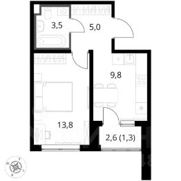 Продаётся 1-комнатная квартира 336, площадью 33,12 м², на 8 этаже в ЖК "Живописный" корпус 2.2. Стоимость — от 6840620 руб. Квартира без отделки, планировка односторонняя, окна на улицу.
