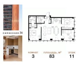 Дом сдан. Ключи в день покупки! В продаже 2-комнатная квартира площадью 63.10 м² с предчистовой отделкой на 17 этаже 54 этажного дома в корпусе Графит. ЖК Симфония 34 - концептуально новый жилой комплекс премиум-класса с подземной парковкой, состоит из четырех башен высотой 36 - 54 этажа. Квартиры сдаются с базовой (предчистовой) отделкой MR BASE или дизайнерской чистовой отделкой MR READY. Высота потолков 3 - 6 метров, окна высотой до 2,6 м. Более 100 кладовых в подземной части ЖК и более 500 на этажах. Безопасность - Система контроля входа на территорию комплекса, биометрия - Система автоматического водяного пожаротушения и противопожарного водопровода, система пожарной вентиляции - Доступ на парковку при помощи системы распознавания автомобильных номеров, карточка для контроля доступа резидентов - Система видеонаблюдения - Круглосуточная связь через приложение, телефон, голосовые сообщения с охраной, консьержем, call-центр. Расположение Пешком - 6 минут до метро "Дмитровская" - 15 минут до Тимирязевского парка На машине - 5 минут до Савеловского вокзала и Аэроэкспресса в Шереметьево - 10 минут до Москва-Сити и Садового кольца Благоустройство - 70% территории отведены под зеленые насаждения и ландшафтный дизайн - Приватный Японский сад - Детские площадки с зонированием по возрасту - Clubhouse для резидентов - Wellness & SPA - Зона для пикника, зона с гамаками - Центральное лобби, ресторан, коммерческие помещения - Дополнительный вход/выход на территорию комплекса Окружение - В 10 минутах от Симфония 34 находится дизайн-завод Flacon, где регулярно проходят культурно-образовательные и развлекательные мероприятия - Тимирязевский парк расположен в 850 м. Площадь парка 232 га - Рядом расположен парк "Дубки", площадью 16,5 га. - В 15 минутах расположен Хлебозавод 9. Здесь находятся шоурумы брендов, кафе разных кухонь мира, образовательные проекты и площадки для мероприятий Компания MR предлагает своим клиентам специальные условия приобретения квартир в рамках программ ипотечного кредитования от банков-партнеров.