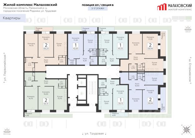 Продается 1-к квартира площадью 39.13 кв. м с черновой отделкой. Квартира расположена на 3 этаже 17 этажного дома, в 203 корпусе. "Малаховский" - жилой комплекс в Раменском районе Подмосковья, идеально подходящий для семей с детьми. Проект от федерального застройщика ГК "Развитие" находится в тихом и зеленом микрорайоне Родники и отличается удобной транспортной связью с Москвой и Люберцами. Три дома высотой 17 этажей с видами на озеро и парк, просторные квартиры, приватный двор-патио с ландшафтным дизайном и доступная инфраструктура обеспечат жителям новых квартир все преимущества городской жизни в живописном природном окружении. Транспортная доступность - Удобный выезд на Егорьевское шоссе и строящуюся магистраль МЕТК (Москва - Егорьевск - Тума - Касимов); - 18 км от МКАД; - 5 мин. до МЦД-3 "Удельная"; - 29 мин. до метро "Лермонтовский проспект". Архитектура Дома отличаются высокой тепло- и шумоизоляцией, долговечностью, высоким уровнем энергоэффективности и современным внешним видом. Фасады выполнены в спокойной цветовой гамме. Из окон с широкоформатным остеклением открываются виды на березовую рощу, озеро и зеленые дворы. Логичным продолжением архитектуры становятся просторные входные группы, где продумано всё: витражное остекление, высокие потолки, дизайнерская отделка, два выхода на обе стороны дома, а также современные лифты (грузовой и пассажирский) и колясочные. Планировочные решения Планировки комплекса "Малаховский" функциональны и эргономичны, что упрощает зонирование и расстановку мебели. Квартиры оснащены гардеробными, лоджиями с панорамным остеклением, двумя санузлами (даже в однокомнатных) и просторными прихожими. Высота потолков - 2,7 м. Квартиры сдаются с отделкой white box, которая позволит воплотить индивидуальный дизайн-проект по своему вкусу. Доступны варианты отделки "под ключ" с применением лучших дизайнерских материалов. Благоустройство В жилом комплексе тщательно продумана концепция благоустройства. Через всю территорию тянутся живописные прогулочные бульвары с ландшафтным дизайном и всесезонным озеленением. Рядом обустроено 3 современных детских площадки с мягким покрытием, а для взрослых предусмотрены уютные лаунж-зоны для общения, тихого отдыха и спорта на свежем воздухе. Двор каждого дома свободен от машин, а для дополнительного уюта и безопасности здесь установлено современное освещение. Естественным продолжением дворового ландшафта становится березовая роща с природными тропинками и небольшим водоемом, прилегающая к жилому комплексу. Инфраструктура и окружение - Наземный паркинг на 55 машино-мест и гостевая парковка; - Все повседневные сервисы (кафе, магазины, салоны красоты) прямо в вашем доме; - Фитнес-клуб, бассейн, спортивные площадки и велодорожки в многочисленных парках микрорайона Родники; - 2 школы, гимназия и детский сад в шаговой доступности; - ТЦ "Родники" с рестораном и супермаркетом; - Петропавловский парк с благоустроенным детским городком и волейбольной площадко