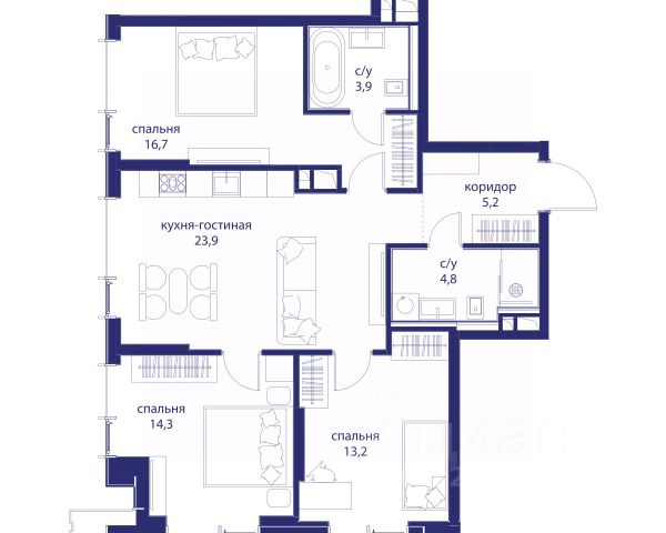 В продаже 3-к квартира от застройщика. Общая площадь 82.00, жилая 44.20, кухня 23.9. Квартира расположена на 9 этаже жилого квартала "Событие-6", корпус 1, Секция 3. Квартира с чистовой отделкой. Срок сдачи: 4 кв. 2029 года.