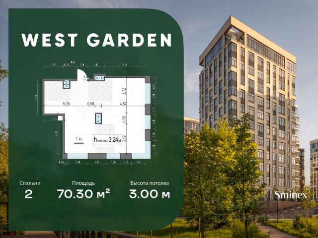 Комфортная и продуманная до мелочей 1-спальная квартира площадью 27.00 кв. м на 13 этаже в клубном доме 16. Увеличенная площадь окон и высота потолков 3.00 м дарят впечатляющие виды на парки, зеленые зоны и природные заказники. West Garden - это собрание клубных домов высотой 12-14 этажей в собственном парке 16 гектаров вдоль реки. Просторный среднеэтажный квартал расположен на Минской улице, в респектабельном Западном округе столицы. Вокруг премиальное окружение и более 1000 гектаров парков. West Garden - это возможность обеспечить себе и своей семье лучшие условия для жизни в одном из самых привлекательных и зелёных районов столицы. Гармония природы дополнена здесь впечатляющими возможностями и привилегиями: • Расположение в зелёном Западном районе столицы вблизи центра и ключевых магистралей в окружении парковых зон (заказник "Долина реки Сетунь", Мосфильмовский пруд, Ботанический сад МГУ, природный заказник "Воробьёвы Горы", Парк Победы на Поклонной горе) • Современная лаконичная архитектура, у каждого дома свой индивидуальный облик и выразительный фасад с использованием натуральных и долговечных материалов (гранит, известняк, клинкерный кирпич) • Функциональные лобби с отделкой из дерева и натурального камня с высокими потолками до 7,8 м • Самый большой собственный парк для прогулок и отдыха: 8 га собственной закрытой и благоустроенной территории, а также 8 га прилегающего парка на набережной с зонами отдыха с шезлонгами, маршрутами для бега, пеших и велосипедных прогулок • Инфраструктурный центр Clubhouse только для жителей: клубная гостиная с террасой и творческой атмосферой по фирменному стандарту Friend`s Lab, детская игровая зона 300 кв. м по стандарту Kid`s Lab • Насыщенная и разнообразная инфраструктура для детей любого возраста: 8 развивающих детских площадок в парке, 3 детские площадки на благоустроенной набережной, площадка для отдыха и досуга подростков • Спортивная инфраструктура по стандарту Fit Lab: многофункциональные площадки для футбола, баскетбола, волейбола с трибуной для болельщиков, зона воркаута, теннисные столы, зона для йоги, беговая дорожка 3 километра, фитнес-центр только для жителей • Комфортный и просторный подземный паркинг на 1313 машино-мест, 482 келлера, автомойка только для жителей на четыре поста