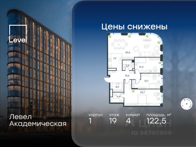 Цена указана с учётом скидки при 100%-й оплате, несубсидированной ипотеке, рассрочке (кроме программы "Рассрочка 0%"). В Академическом районе продаётся 2-комнатная квартира площадью 63.70 кв.м без отделки. Квартира расположена на 18-м этаже 19-этажного жилого комплекса бизнес-класса Левел Академическая (компания Level Group). Площади помещений определены кадастровым инженером по результатам обмеров. Отличная транспортная доступность: - 1 мин. пешком до станции метро "Академическая"; - 4 мин. на автомобиле до ТТК; - 8 мин. на автомобиле до Садового кольца; - 13 мин. на автомобиле до Кремля. Продуманный архитектурный проект: - современная архитектура от бюро UNK project; - высокие потолки в квартирах до 6,62 м; - окна в пол высотой 2,5-2,68 м с панорамным видом на МГУ, Москва-Сити и другие доминанты Москвы; - квартиры с моллированным остеклением - радиусные окна открывают увеличенный угол обзора; - более 20 вариантов планировочных решений; - уникальные квартиры с собственным патио и возможностью обустройства дровяного камина; - квартиры сдаются без отделки, что открывает свободу для создания интерьера по своему вкусу. Расположение: Камерный проект из 1 корпуса расположен тихом зеленом районе Москвы, в непосредственной близости к центру города. В округе построено 80 детских садов, 50 школ и 30 вузов, 7 из которых входят в топ100 вузов России: МГУ, МГИМО, РАНХиГС, МИСИС, РУДН, РЭУ им. Плеханова и РГУ нефти и газа им. Губкина. Этот район буквально утопает в зелени парков, начиная с уютного Академического в 6 минутах пешком и заканчивая одним из крупнейших в городе парком 50-летия Октября (12 минут на автомобиле). Общая площадь природных объектов в радиусе 2-6 км от дома - 476,5 га. Внутренняя инфраструктура: На территории жилого комплекса Левел Академическая откроется собственный торговый центр, а для отдыха жителей будут созданы общественные пространства: комфортное лобби с дизайнерской отделкой, окнами в пол и потолками высотой 4,5 м, а также две благоустроенные зоны - территория по периметру здания и пространство на стилобате. Во дворе на стилобате предусмотрены детская и спортивная площадки, коворкинг и лаунж-зона на открытом воздухе. Стилобат украсят скульптуры животных - жирафа, зайца и волка, которые станут ярким акцентом внутреннего двора жилого комплекса Левел Академическая, подчеркивая близость к музею Дарвина. Процент озеленения территории - 58%. Технологии и безопасность: Жителей жилого комплекса Левел Академическая не коснется ежегодное отключение горячей воды благодаря собственным центральным водонагревателям. Безопасность гарантирует круглосуточная охрана, безлимитный вайфай, круглосуточное видеонаблюдение. Удобное перемещение внутри комплекса будут обеспечивать 5 лифтов с доступом в паркинг с жилых этажей. п