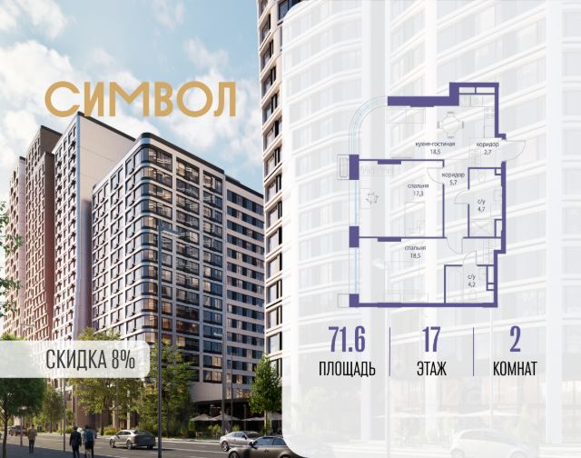 Скидка до 8% действует до 31.03.2026 г. при 100% оплате и не субсидированной ипотеке. Продается 3-комнатная квартира от застройщика: общая площадь 87.10 м², жилая 38.60 м², кухня 17.60 м², 10-й этаж, жилой квартал "Вдохновение", корпус 34 (секция 1). Срок сдачи: 4 квартал 2027 года. Позвоните сейчас и забронируйте квартиру! Квартал бизнес-класса СИМВОЛ - это городское пространство нового поколения в историческом районе Лефортово, на границе ЦАО, в 2 км от Садового кольца. Бионическая архитектура СИМВОЛА превратила Лефортово в суперсовременное и модное пространство. Из окон, с балконов и террас просторных квартир СИМВОЛА открываются отличные виды на город и новый парк "Зеленая река", "протекающий" через все кварталы комплекса на 2 км. В квартале уже есть все, что нужно для комфортной жизни: кафе и рестораны, супермаркеты и магазины, медицинские и физкультурно-оздоровительные центры, салоны красоты и барбершопы, аптеки и оптики, химчистки, пункты доставки и другие сервисы - всего более 90 действующих объектов внутриквартальной инфраструктуры. Для юных жителей СИМВОЛА открыты детский сад и инженерный лицей при МГТУ им. Баумана. Особенности квартала: • Свой парк "Зеленая Река" - 10 га зелени и развлечений на любой вкус! • Уникальная для Москвы архитектура - Проект создан архитектурной мастерской ATRIUM по дизайн-коду британских бюро LDA Design и UHA London. • Богатая инфраструктура с детскими садами и лицеем им. Баумана, кафе и ресторанами, супермаркетами и аптеками, зоной для фитнеса, бассейном и мед. центром. • Квартиры с панорамными окнами, террасами, ванными с окнами и каминами редких форматов. • Закрытые безопасные зелёные дворы-парки без машин!