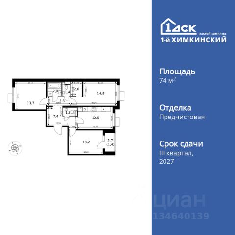 Прямая продажа от застройщика! Жилой Комплекс класса Комфорт. Продаётся 1-к квартира номер 209 общей площадью 34.4 кв.м. на 6-м этаже 16 этажного здания. Без отделки. Особенности квартиры: - Мастер-зона с гардеробной. Просторное место для отдыха и удобного хранения вещей. - Линейная планировка - максимальная функциональность и удобство. - Гардеробная - удобство для хранения и организации вещей. - Ниша под шкаф - компактное и удобное место для вещей. - Лоджия - уютное место для отдыха и тишины. Информация о комплексе: Квартал класса комфорт плюс, где современное городское пространство граничит с удивительной природой вокруг. 1-й Химкинский расположен на территории в 102 га и органично вписан в природное окружение Химкинского леса и канала им. Москвы. В проекте предусмотрена богатая коммерческая инфраструктура с собственным торговым центром, общеобразовательные учреждения и социальные объекты. Изюминкой жилого комплекса будут спортивно-оздоровительный комплекс с термами и SPA и семейный парк развлечений. Транспортная доступность: ЖК "1-й Химкинский" дает возможность выбрать любой способ передвижения как до города, так и до самых разных объектов, которые могут представлять интерес для его жителей. Не важно, какой способ передвижения вы предпочитаете, успевать всегда и везде можно вне зависимости от выбора транспорта. - 8 мин. пешком (800 м) до остановки "Золотая Арка" -10 мин пешком (1 км) до остановки "Поворот на Ивакино" Внутренняя инфраструктура: - Безопасность: закрытые дворы без машин, безбарьерная среда и сквозные подъезды, камеры на детских площадках с возможностью трансляции на смартфоне - Идеальный отдых в кругу семьи: семейный парк развлечений на территории, торговый центр (2-х этажный) общей площадью более 8 тыс. кв. м с фудкортом - Образование: 3 детских сада и современная муниципальная школа на 2450 мест - Спортивная среда: закольцованный веломаршрут с навигацией, спортивный комплекс с термами, закрытый тренажерный зал и зоны ворк-аута - Социальные объекты: поликлиника со станцией скорой помощи, пожарное депо - Подземный паркинг и кладовые помещения на -1 этаже, станция техобслуживания и автомойка на территории