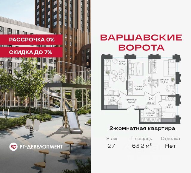 Рассрочка 0% + скидка 5%. Первый взнос 20%, второй — через 6 мес., остаток —до ввода. Продаются 1-комнатные апартаменты 41.9 кв.м. в МФК "Варшавские ворота" на 27-м этаже 30 этажного дома. МФК "Варшавские ворота" — это точка баланса между природой и городом, стилем и функциональностью, жизнью сегодня и устойчивым будущим. Коротко о важном: - 1 минута пешком от м. Аннино; - Удобные выезды на Варшавское шоссе и МКАД; - Высота потолков 2,7 - 3 м; - Закрытый двор-парк; - Школы и детские сады в 10-15 минутах пешком от дома; - Технические лоджии для размещения кондиционеров; - Подземный паркинг; - РГ-Девелопмент — ТОП-20 крупнейших застройщиков Москвы. Проект сочетает в себе современную архитектуру и продуманное благоустройство с уникальным природным окружением. Всего в нескольких минутах от дома — девять парков, каскад прудов и крупнейшие лесопарковые зоны Москвы, создающие ощущение жизни в зеленом оазисе посреди мегаполиса. Архитектурная концепция - стиль Чикаго в Москве. Фасады облицованы вентфасадами под клинкерную плитку. Фасады подчеркивают строгие линии и современный стиль, а входные группы разработаны московским бюро Синтаксис. Вестибюли оформлены с применением керамогранита, декоративной штукатурки и гипсовых панелей, детали из латуни добавляют изысканности. Проект находится в 1 минуте пешком от метро "Аннино", в 12 минутах от станции "Улица Академика Янгеля" и рядом с МЦД-2 "Красный Строитель". Для автомобилистов предусмотрен прямой выезд на Варшавское шоссе и два съезда на МКАД, что позволяет быстро добираться в любую часть города. Среди планировочных решений представлены разнообразные форматы: от функциональных студий до просторных 4-комнатных квартир и апартаментов. Высокие потолки усиливают ощущение простора, а продуманные планировки включают мастер-спальни, гардеробные, объединённые кухни-гостиные и несколько санузлов. Центральное пространство комплекса — закрытый двор без машин. Он разделён на функциональные зоны: детские игровые комплексы, спортивные площадки и уютные места для тихого отдыха. На первых этажах разместятся магазины, кафе и сервисы, что позволит решать повседневные задачи, не покидая территорию комплекса. Для семей с детьми предусмотрен частный детский сад на 50 мест. Подземная парковка и кладовые обеспечат удобство хранения и безопасность автомобилей. Комплекс окружён девятью парками и лесопарками, каждый из которых обладает своей атмосферой. Выйти на пробежку в Аннинском лесопарке, насладиться прогулками по аллеям в Битцевском лесу, спланировать пикник или велопрогулку в Покровском парке, любоваться каскадом Кировоградских прудов. Всего в двух станциях — музей-заповедник "Царицыно" с дворцами, фонтанами и живописными пейзажами. Здесь каждый житель найдёт своё любимое место для отдыха. Южное Чертаново - район развитой инфраструктурой, где сочетаются городские удобства и природное окружение. В шаговой доступности находятся школы, детские сады, спортивные комплексы и торговые цен