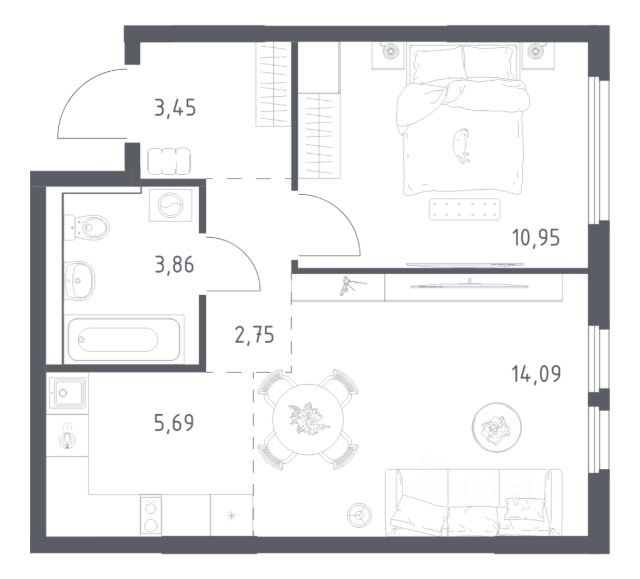 • Возможность подобрать планировку от 22,2 м² м².