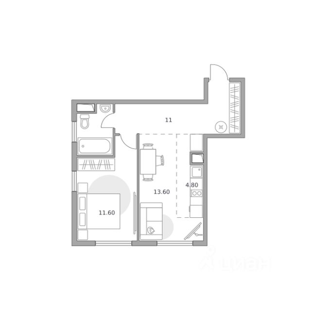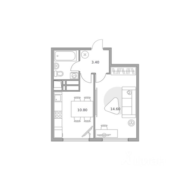 Продаётся 1-комнатная квартира 690, площадью 32,60 м², на 5 этаже в ЖК "Бригантина" корпус 1. Стоимость — от 10812384 руб. Квартира с отделкой, планировка односторонняя, окна на улицу.