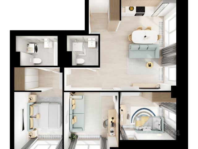 В проект входит 10 корпусов с просторными и светлыми подъездами, два детских сада и подземный паркинг. Внутри квартала будут уютные дворы-парки с детскими площадками и местами для отдыха. А чуть дальше, чтобы шум не беспокоил жителей домов, мы построим спортивные площадки. Во всех квартирах в этом проекте предчистовая отделка, с которой легче реализовать ваши дизайнерские идеи.